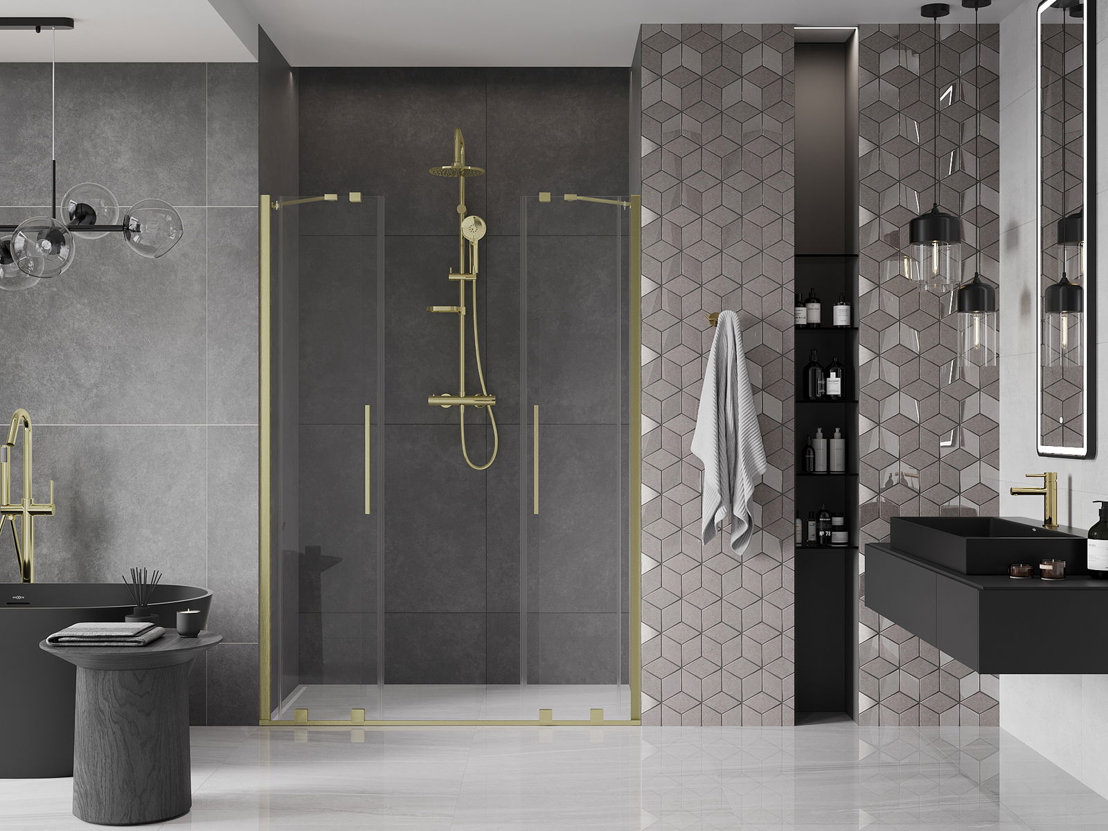 Mexen Velar Duo drzwi prysznicowe rozsuwane 160 cm, transparent, złote szczotkowane - 871-160-000-02-55