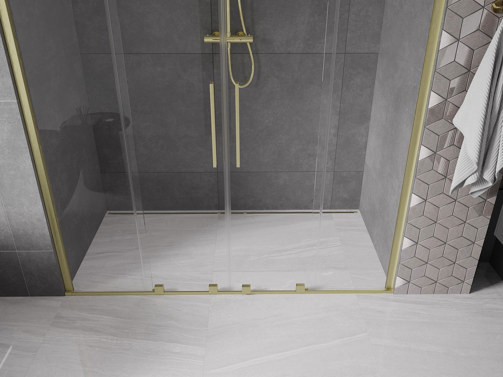 Mexen Velar Duo drzwi prysznicowe rozsuwane 170 cm, transparent, złote szczotkowane - 871-170-000-02-55