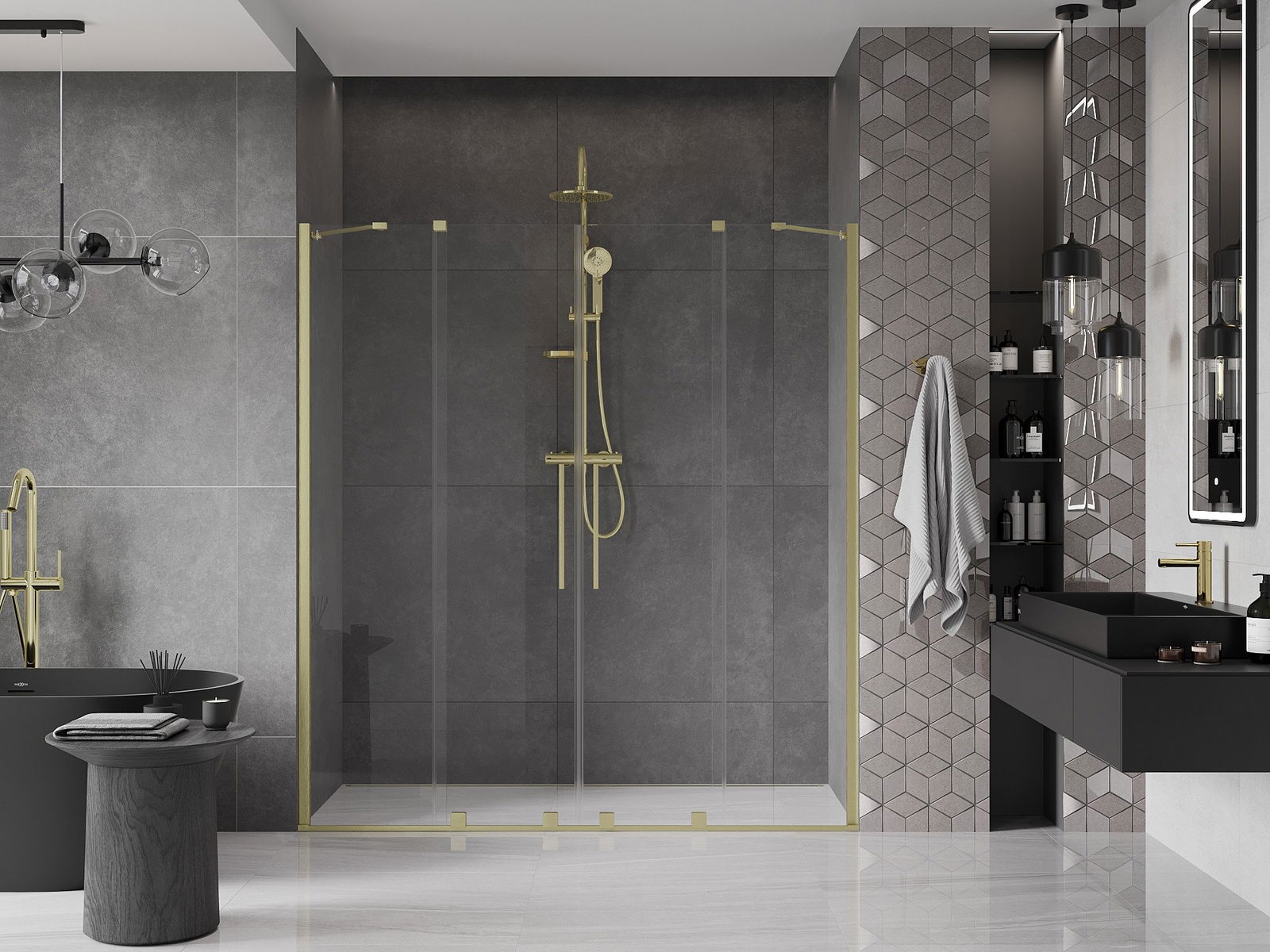 Mexen Velar Duo drzwi prysznicowe rozsuwane 200 cm, transparent, złote szczotkowane - 871-200-000-02-55
