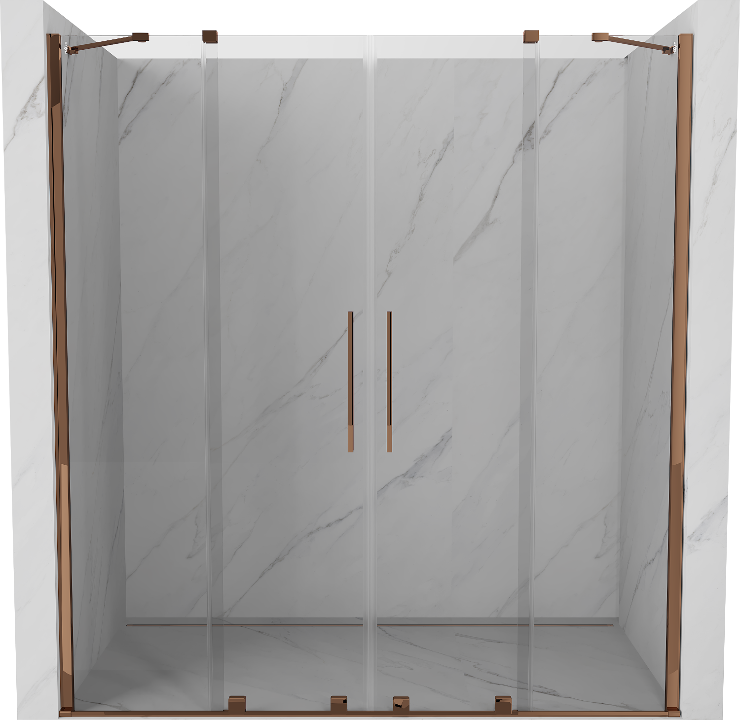 Mexen Velar Duo drzwi prysznicowe rozsuwane 200 cm, transparent, różowe złoto - 871-200-000-02-60