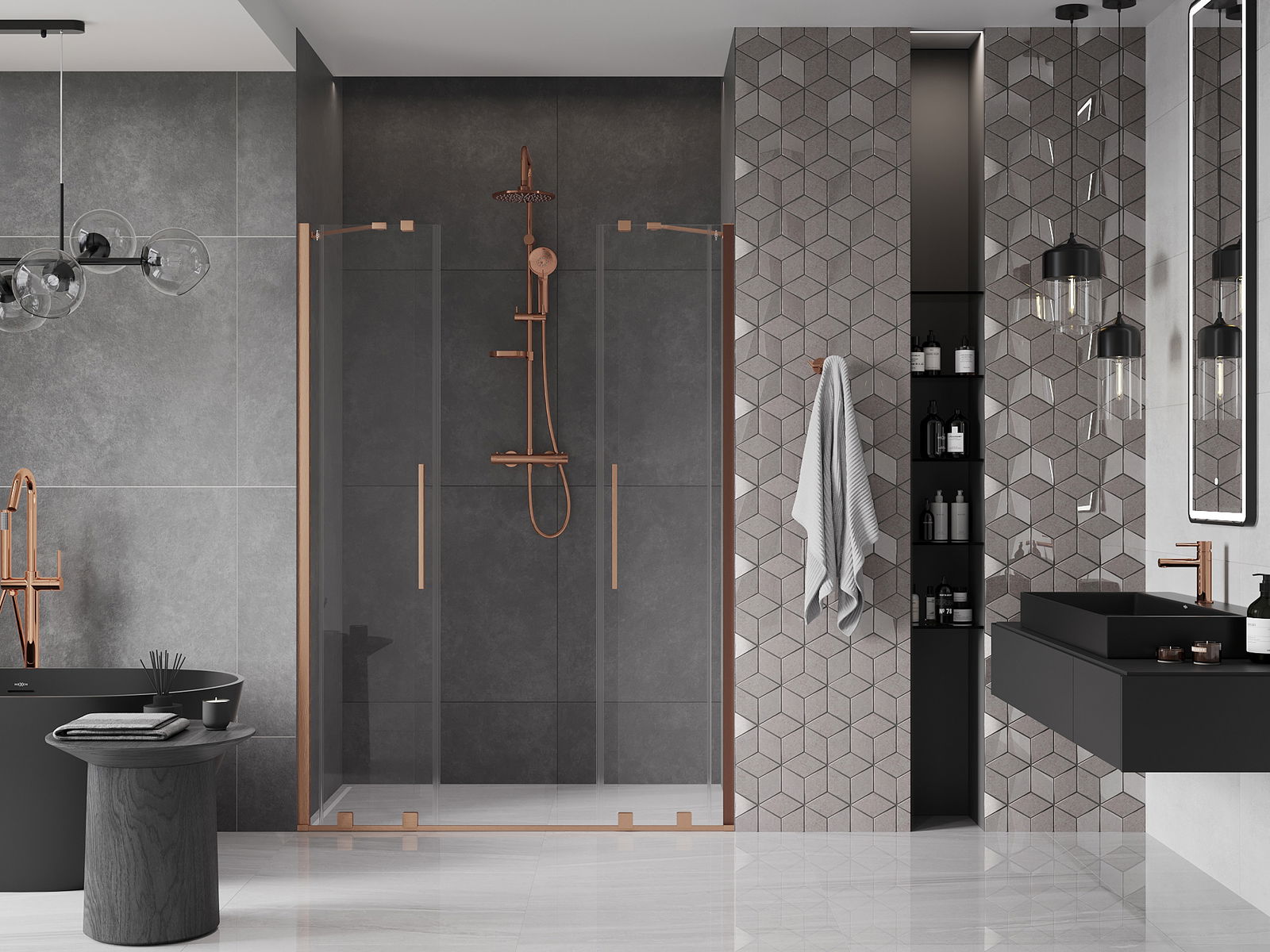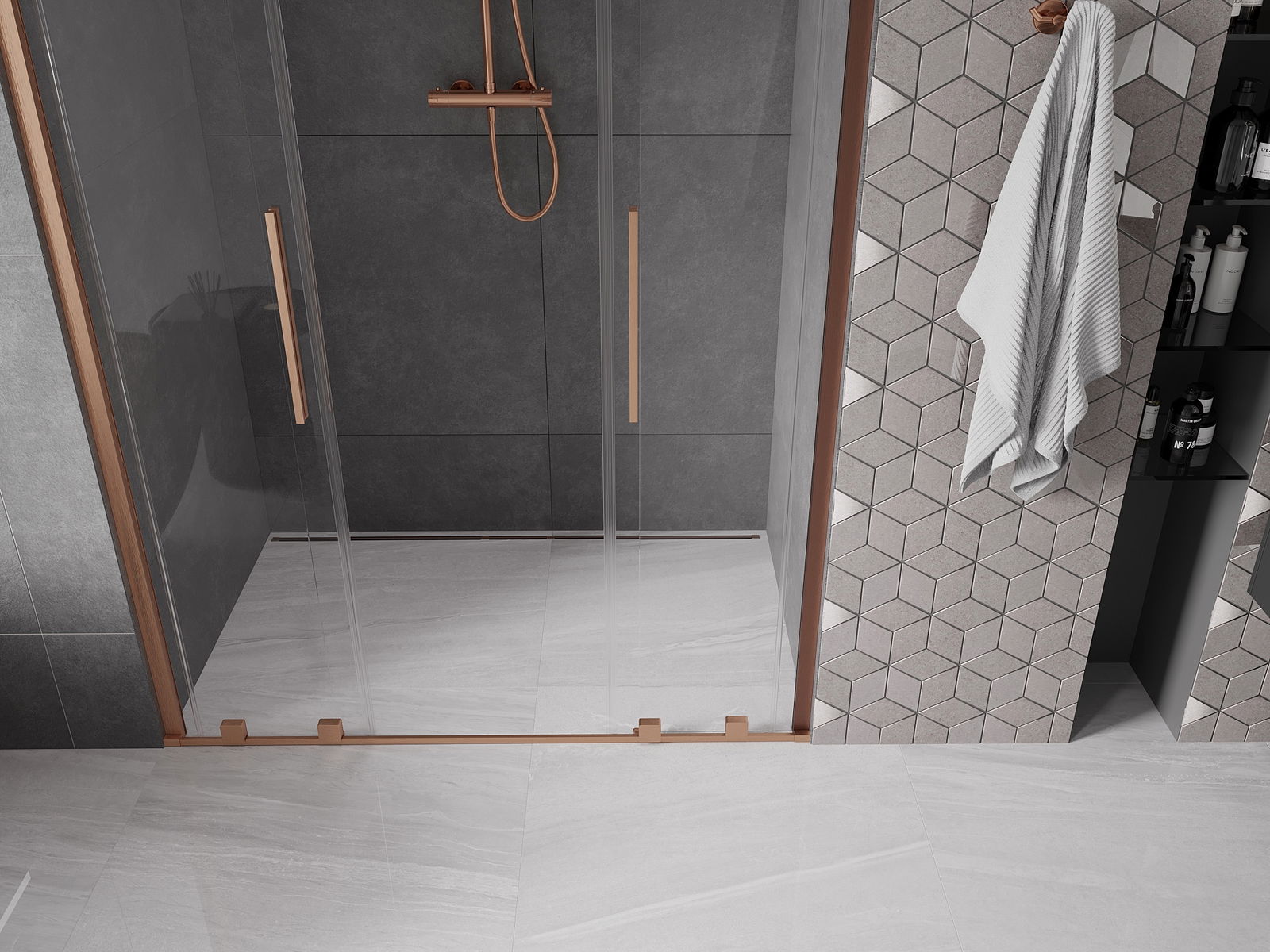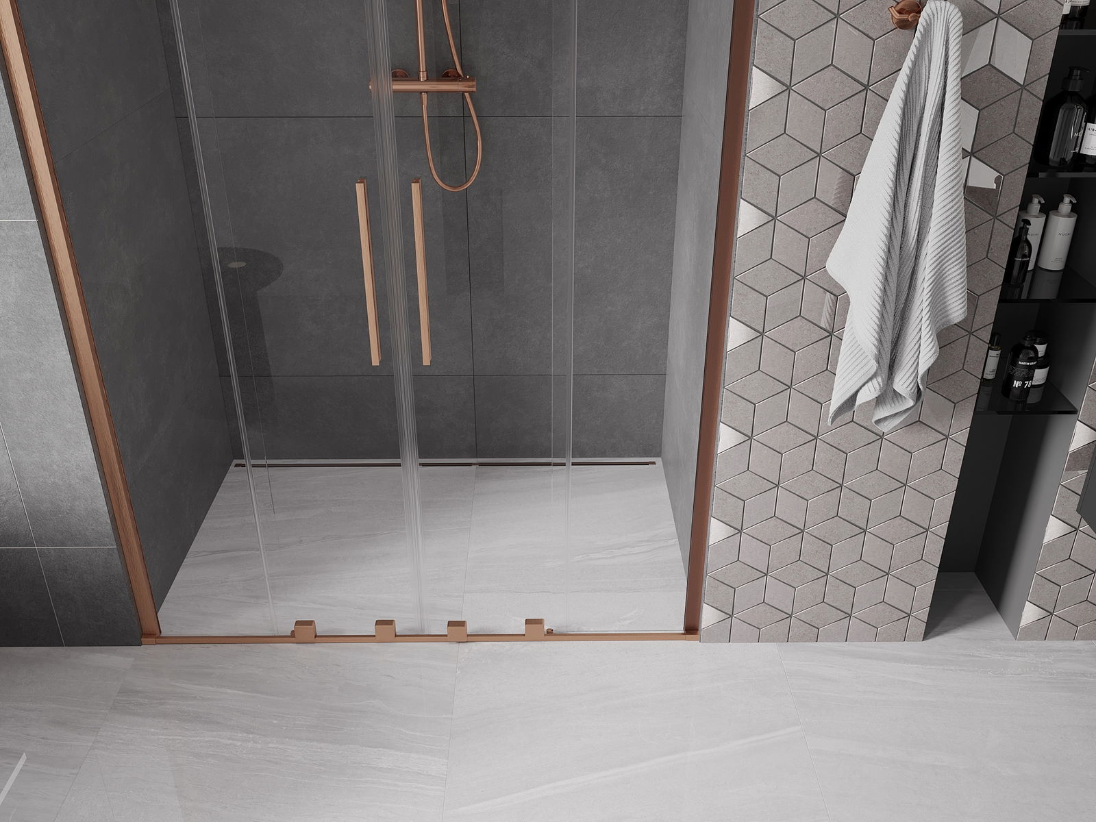Mexen Velar Duo drzwi prysznicowe rozsuwane 150 cm, transparent, miedź szczotkowana - 871-150-000-02-65