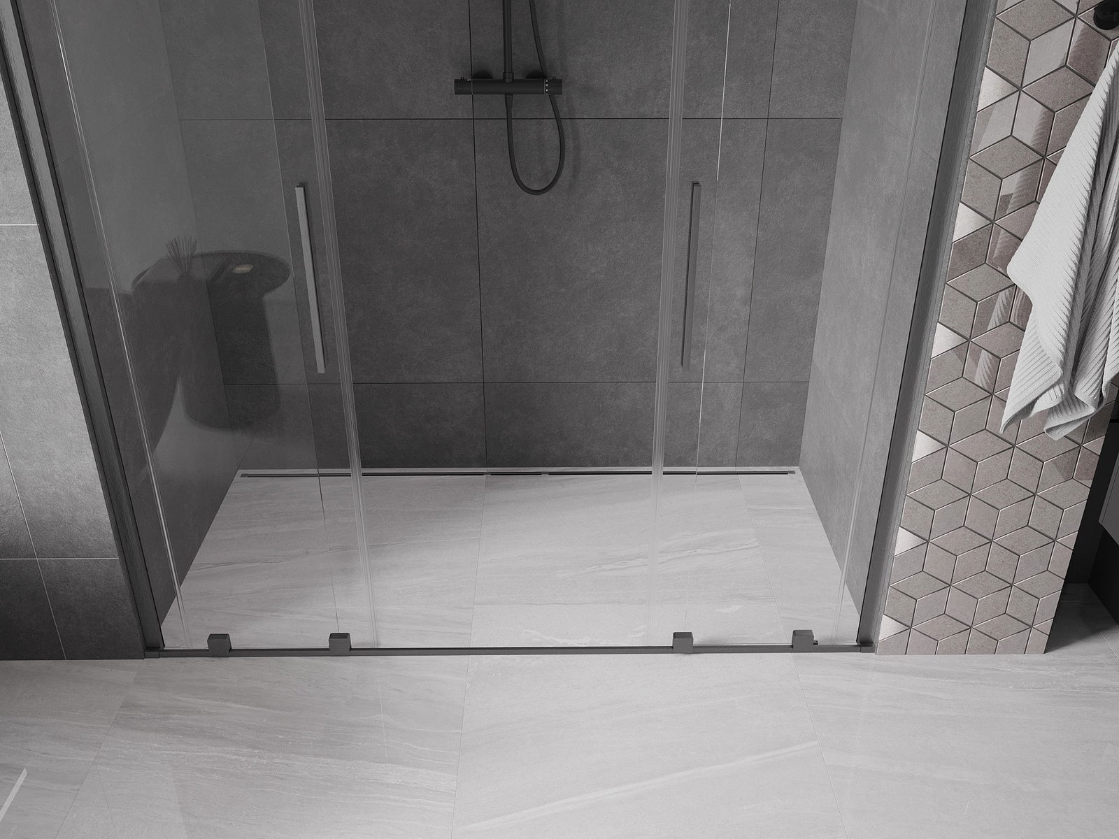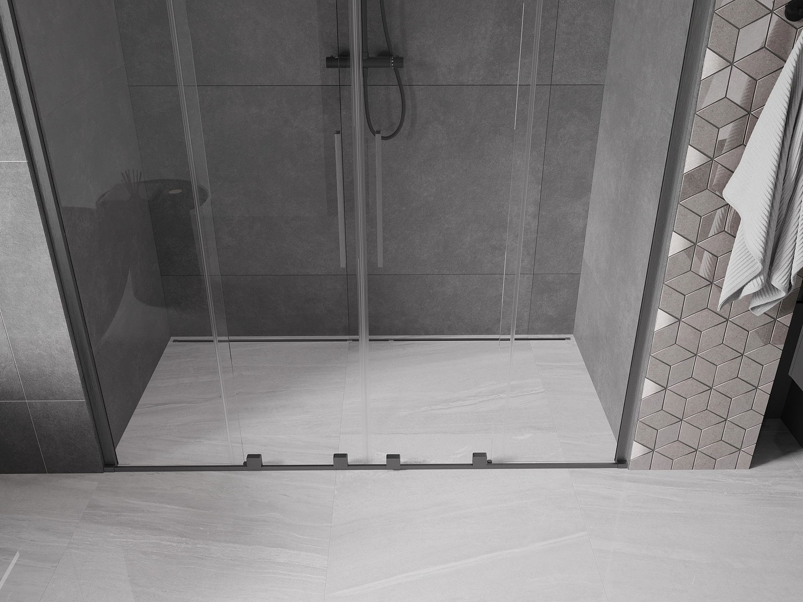 Mexen Velar Duo drzwi prysznicowe rozsuwane 170 cm, transparent, gun gray szczotkowany - 871-170-000-02-66