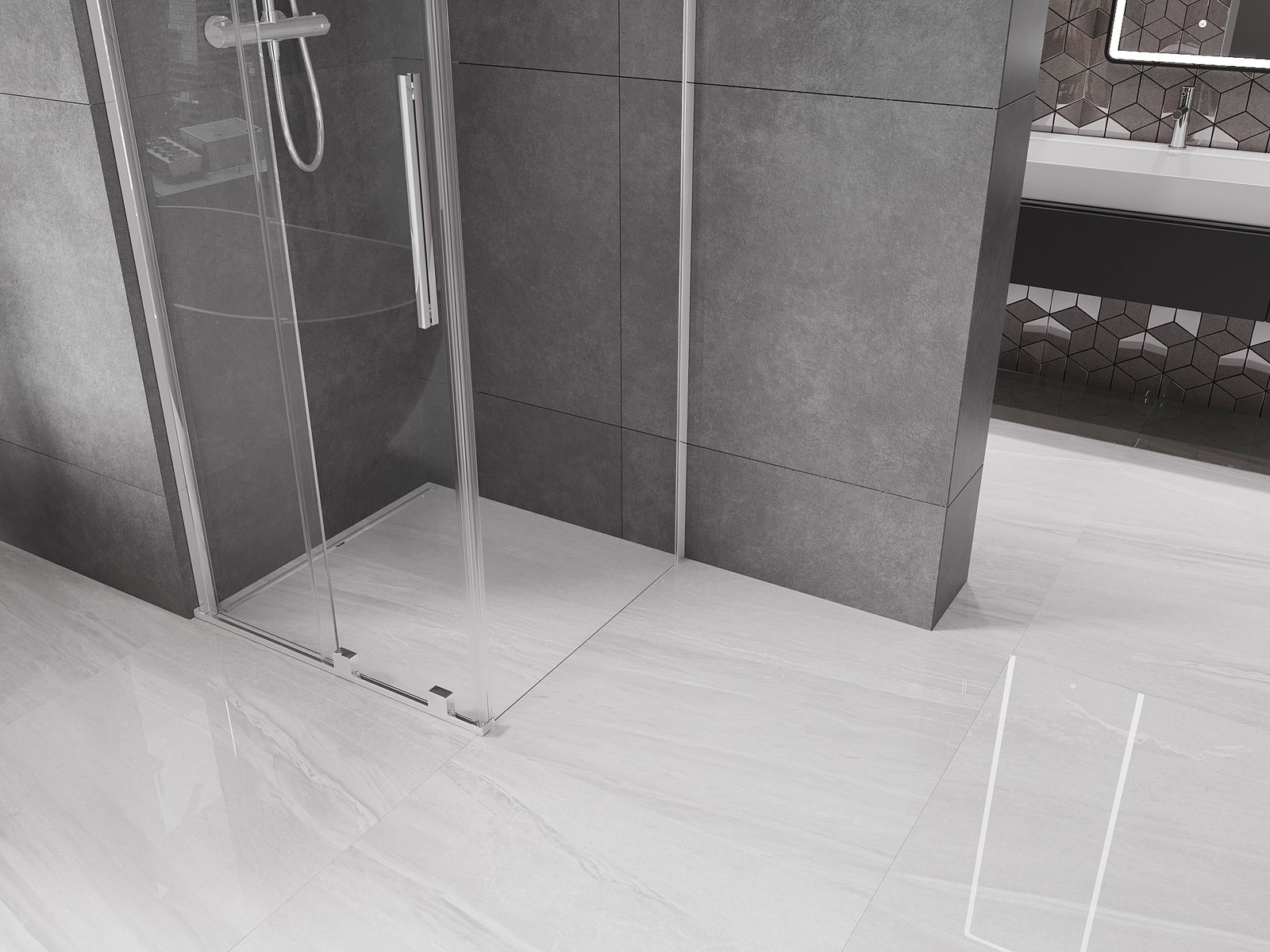 Dzięki zastosowaniu uniwersalnego systemu mocowania, drzwi prysznicowe mogą zostać zamontowane z prawej lub z lewej strony, zależnie od potrzeb. Dzięki temu możesz z łatwością zaprojektować prysznic dopasowany do przestrzeni łazienki.