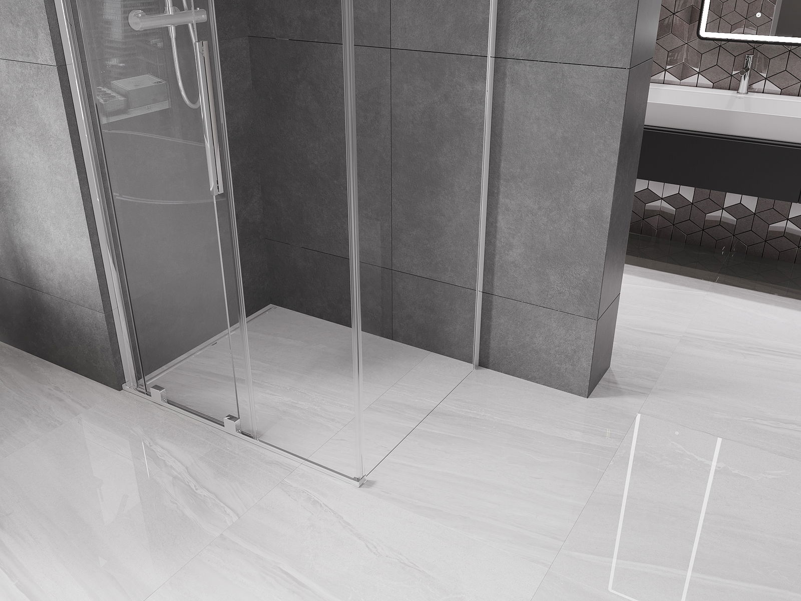 Dzięki zastosowaniu uniwersalnego systemu mocowania, drzwi prysznicowe mogą zostać zamontowane z prawej lub z lewej strony, zależnie od potrzeb. Dzięki temu możesz z łatwością zaprojektować prysznic dopasowany do przestrzeni łazienki.