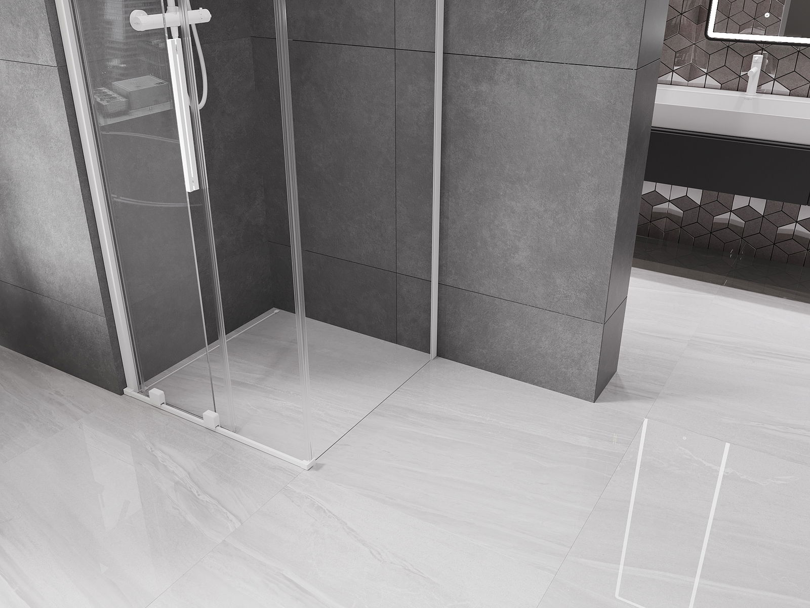 Dzięki zastosowaniu uniwersalnego systemu mocowania, drzwi prysznicowe mogą zostać zamontowane z prawej lub z lewej strony, zależnie od potrzeb. Dzięki temu możesz z łatwością zaprojektować prysznic dopasowany do przestrzeni łazienki.