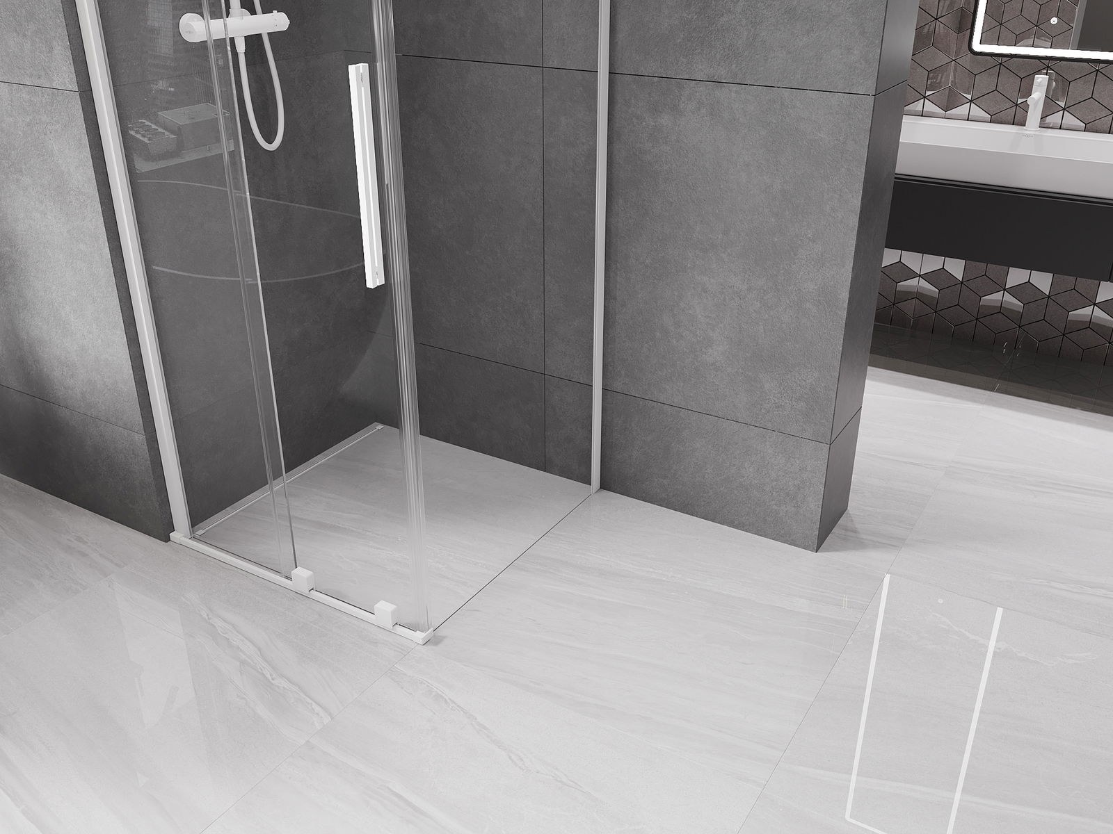 Dzięki zastosowaniu uniwersalnego systemu mocowania, drzwi prysznicowe mogą zostać zamontowane z prawej lub z lewej strony, zależnie od potrzeb. Dzięki temu możesz z łatwością zaprojektować prysznic dopasowany do przestrzeni łazienki.
