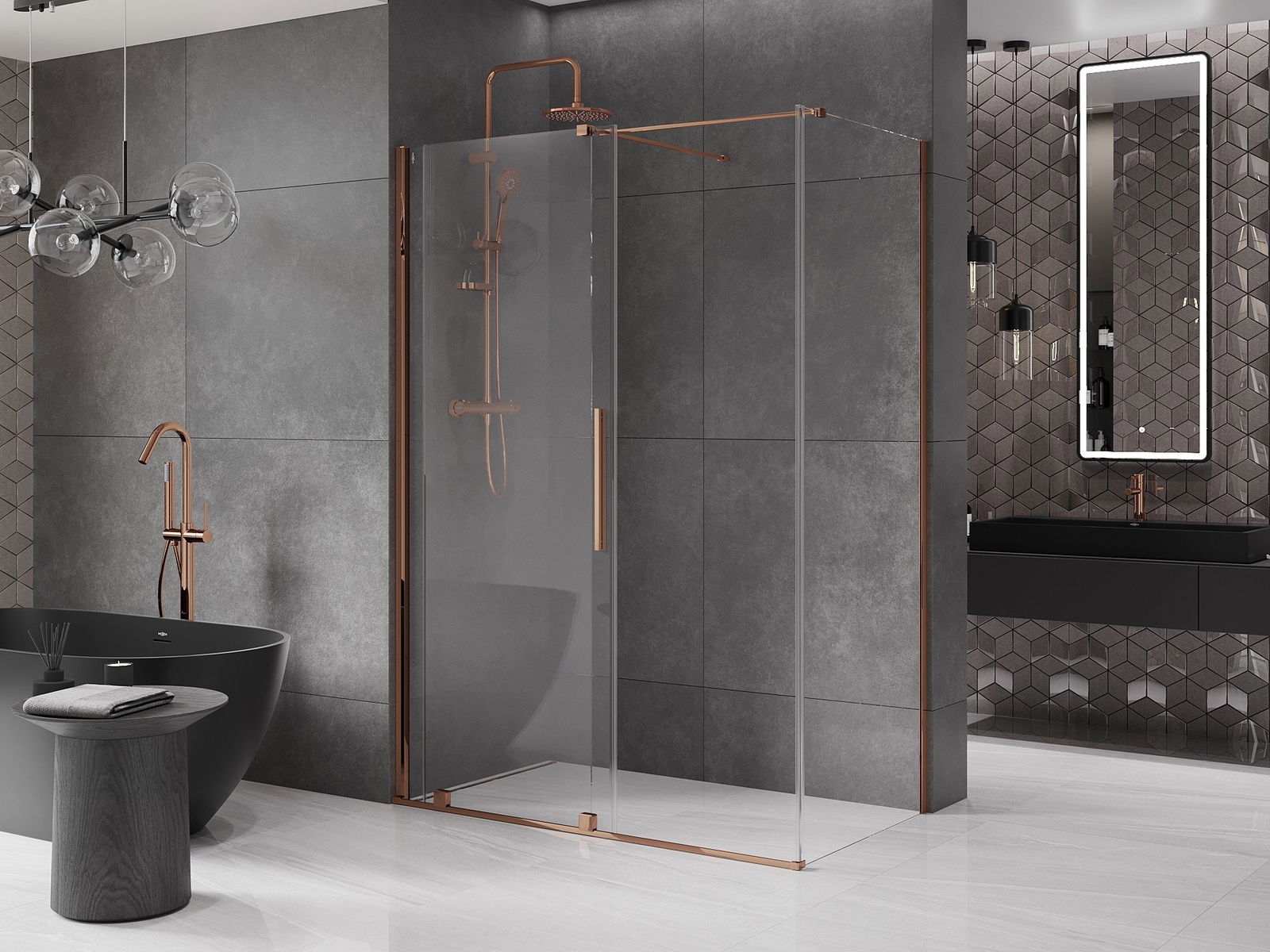Mexen Velar kabina prysznicowa rozsuwana 150 x 70 cm, transparent, różowe złoto - 871-150-070-01-60