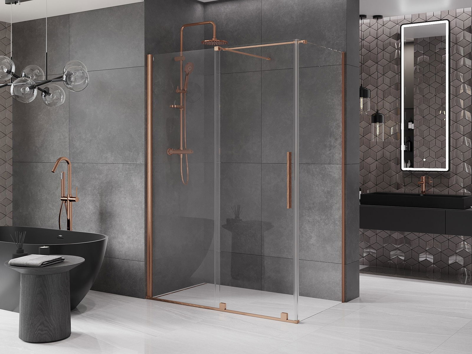 Mexen Velar kabina prysznicowa rozsuwana 140 x 70 cm, transparent, miedź szczotkowana - 871-140-070-01-65