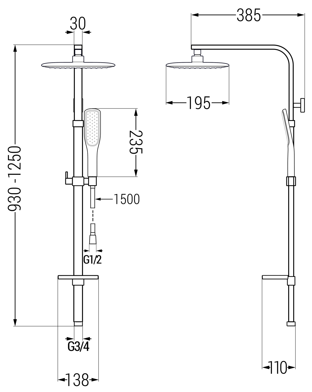 Odległość od ściany: 385 mm