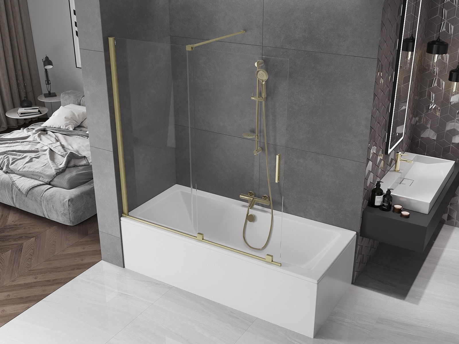 Mexen Velar parawan nawannowy 2-skrzydłowy rozsuwany 150 x 150 cm, transparent, złoty szczotkowany - 896-150-000-01-55