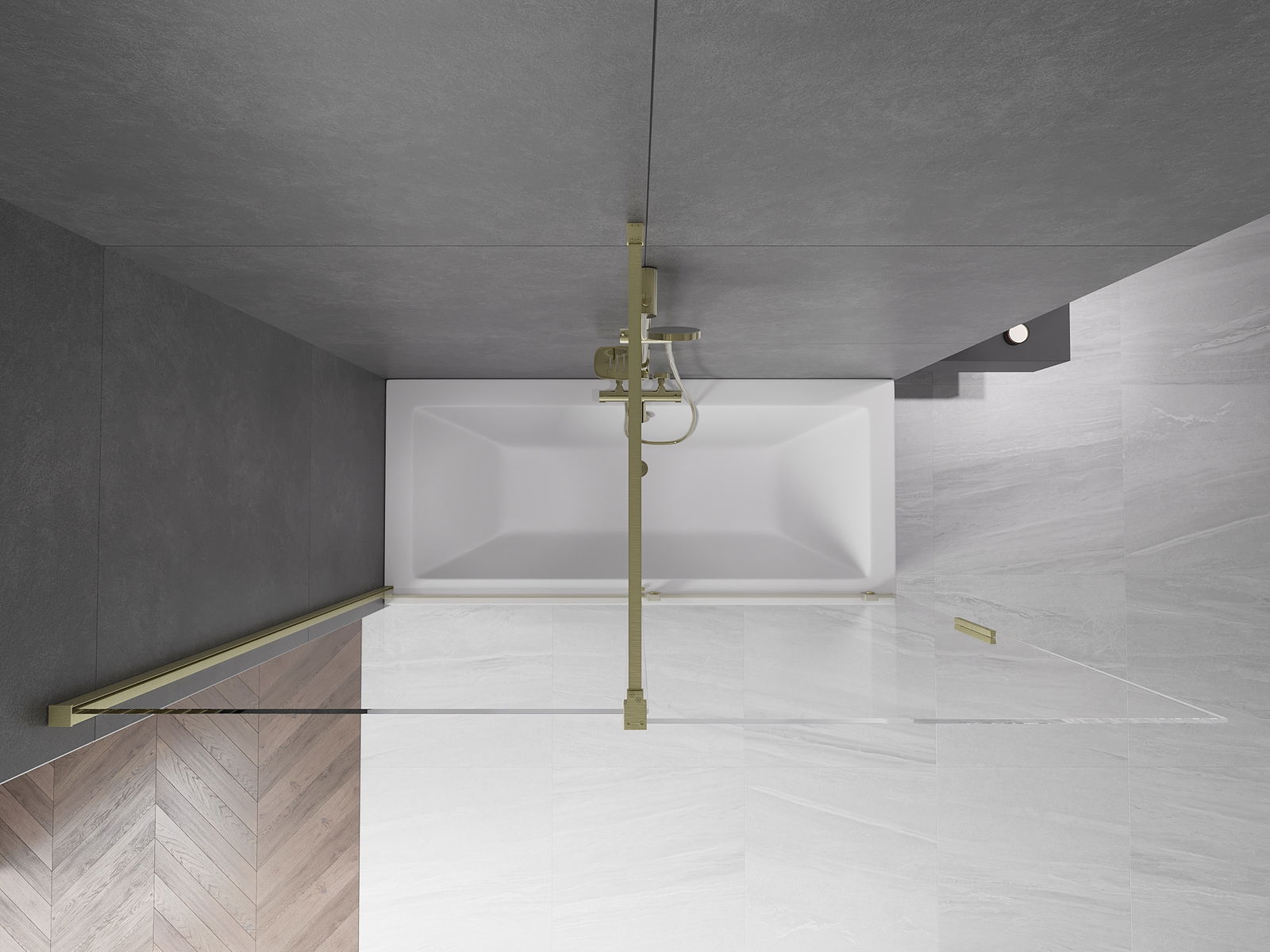 Mexen Velar parawan nawannowy 2-skrzydłowy rozsuwany 180 x 150 cm, transparent, złoty szczotkowany - 896-180-000-01-55