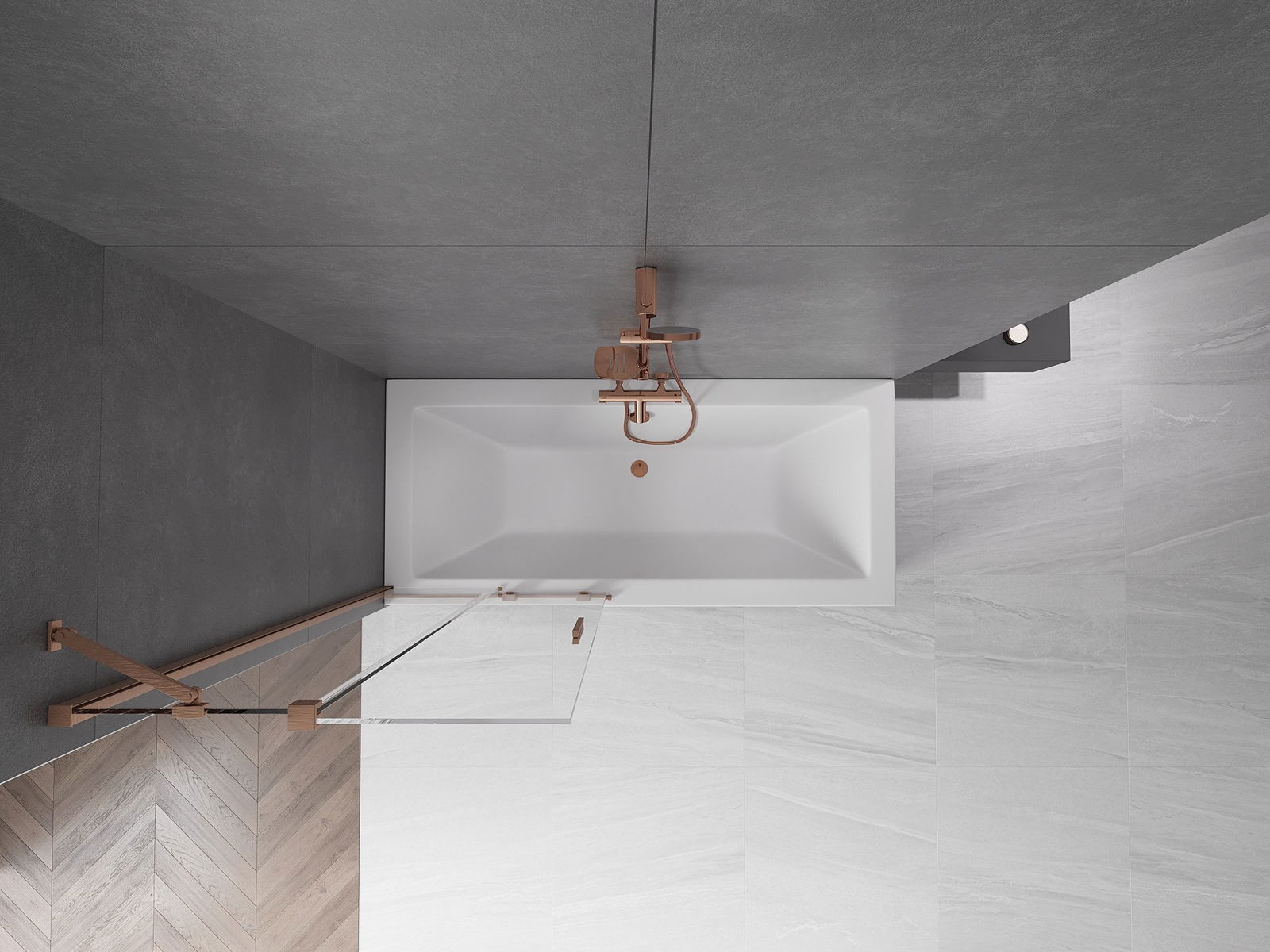 Mexen Velar parawan nawannowy 2-skrzydłowy rozsuwany 85 x 150 cm, transparent, miedź szczotkowana - 896-085-000-01-65