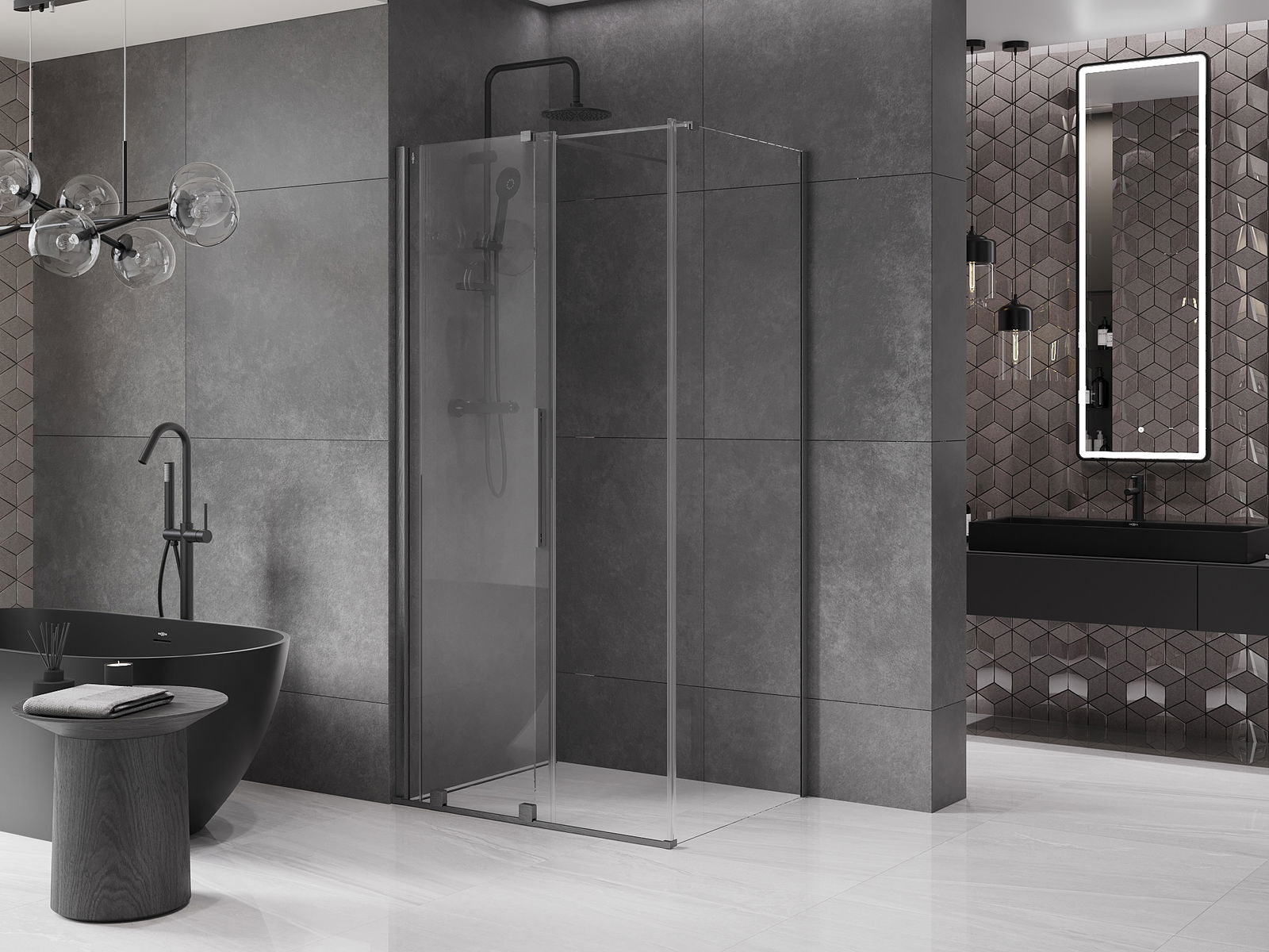 Poręczny i wygodny uchwyt został wykonany ze stali nierdzewnej. Modny kształt w połączeniu z wykończeniem dopasowanym do koloru profili nadaje całości nowoczesnego i stylowego wyglądu, podkreślając estetykę każdej łazienki.