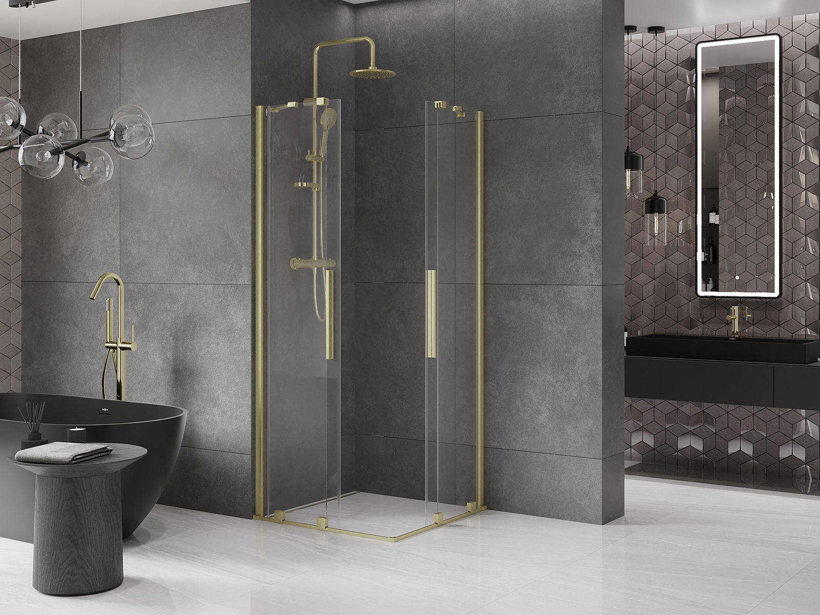 Mexen Velar Duo kabina prysznicowa rozsuwana 90 x 90 cm, transparent, złota szczotkowana - 871-090-090-02-55
