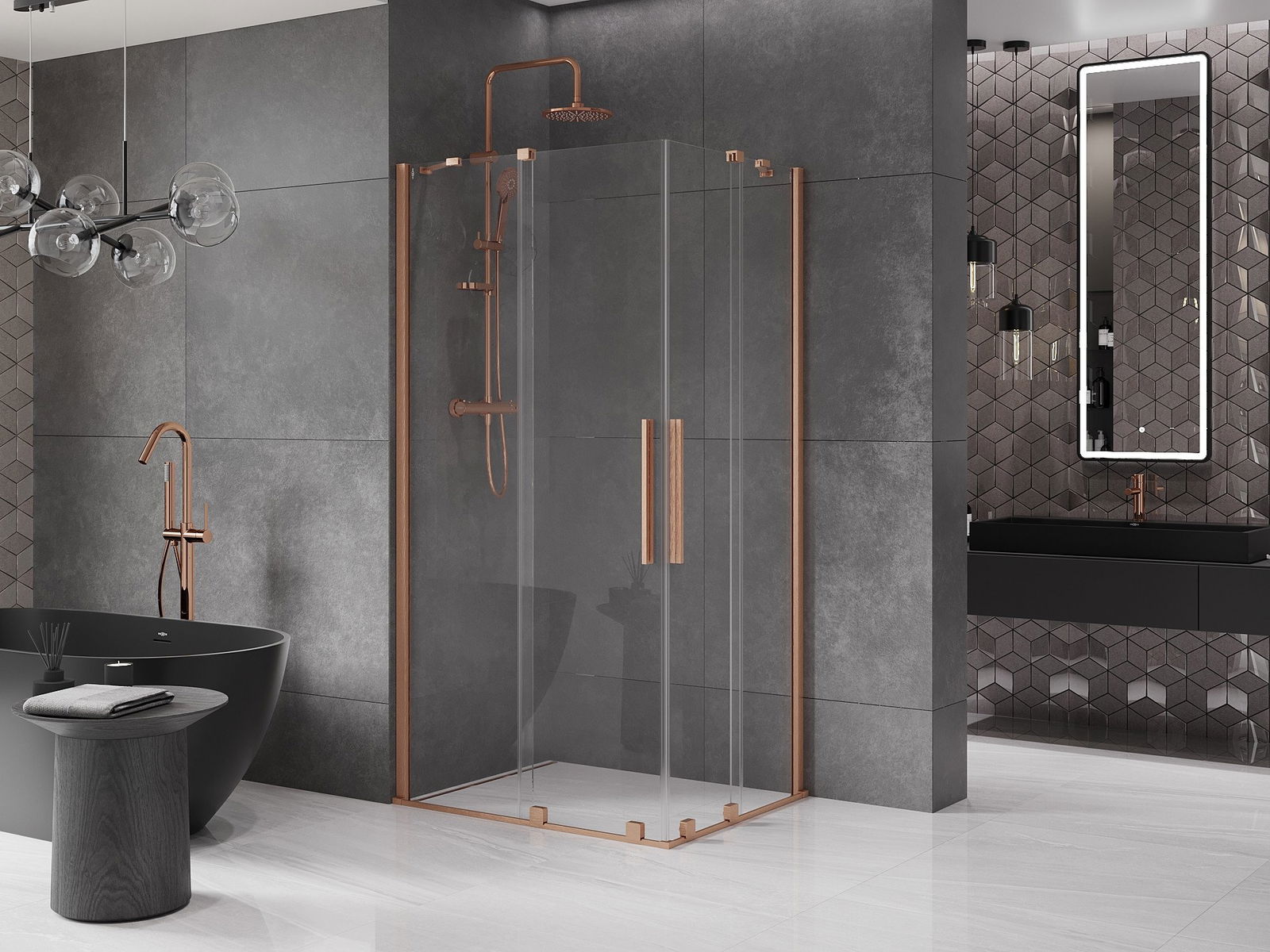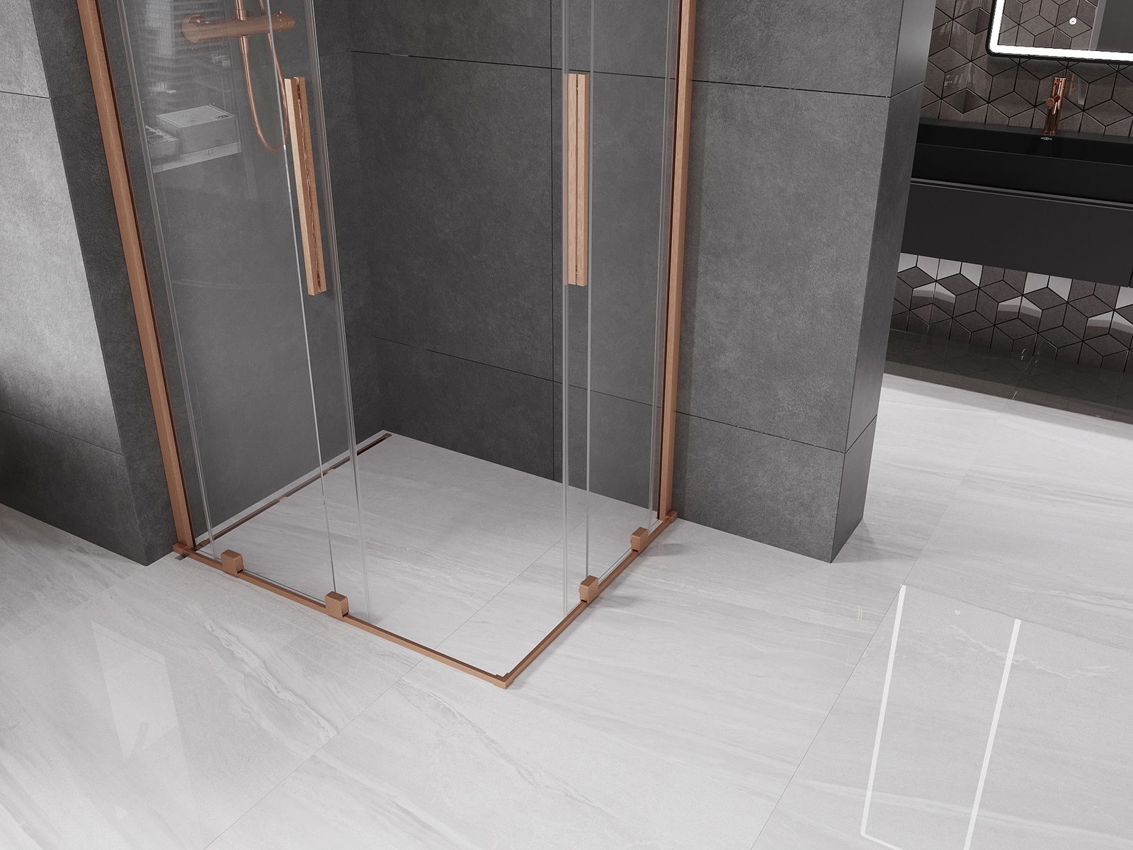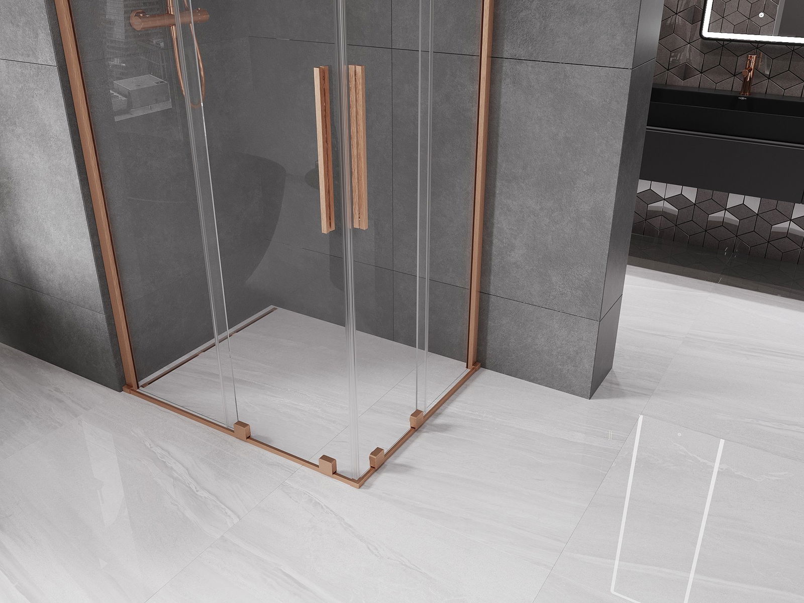 Mexen Velar Duo kabina prysznicowa rozsuwana 100 x 90 cm, transparent, miedź szczotkowana - 871-100-090-02-65
