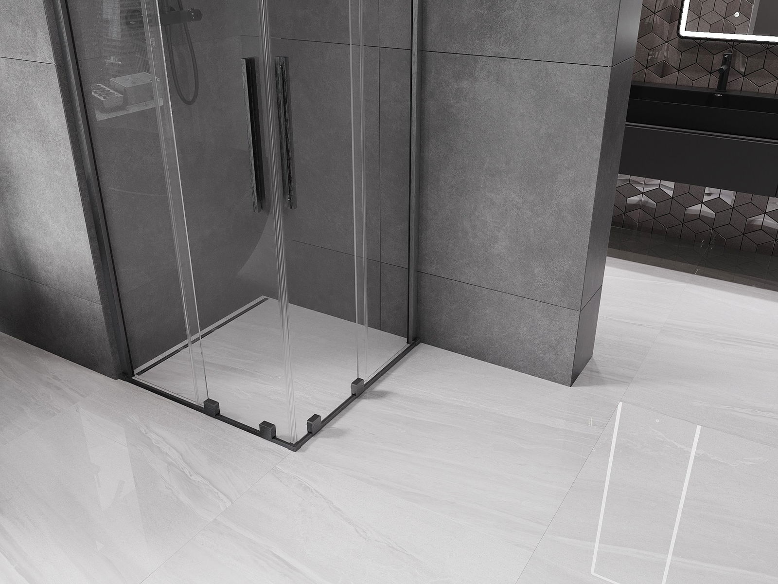 Dzięki zastosowaniu uniwersalnego systemu mocowania, drzwi prysznicowe mogą zostać zamontowane z prawej lub z lewej strony, zależnie od potrzeb. Dzięki temu możesz z łatwością zaprojektować prysznic dopasowany do przestrzeni łazienki.