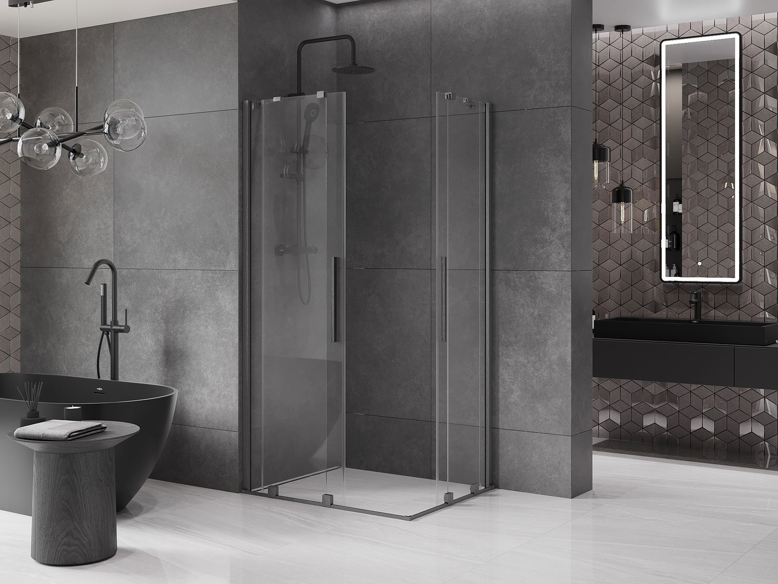 Mexen Velar Duo kabina prysznicowa rozsuwana 90 x 80 cm, transparent, gun gray szczotkowany - 871-090-080-02-66
