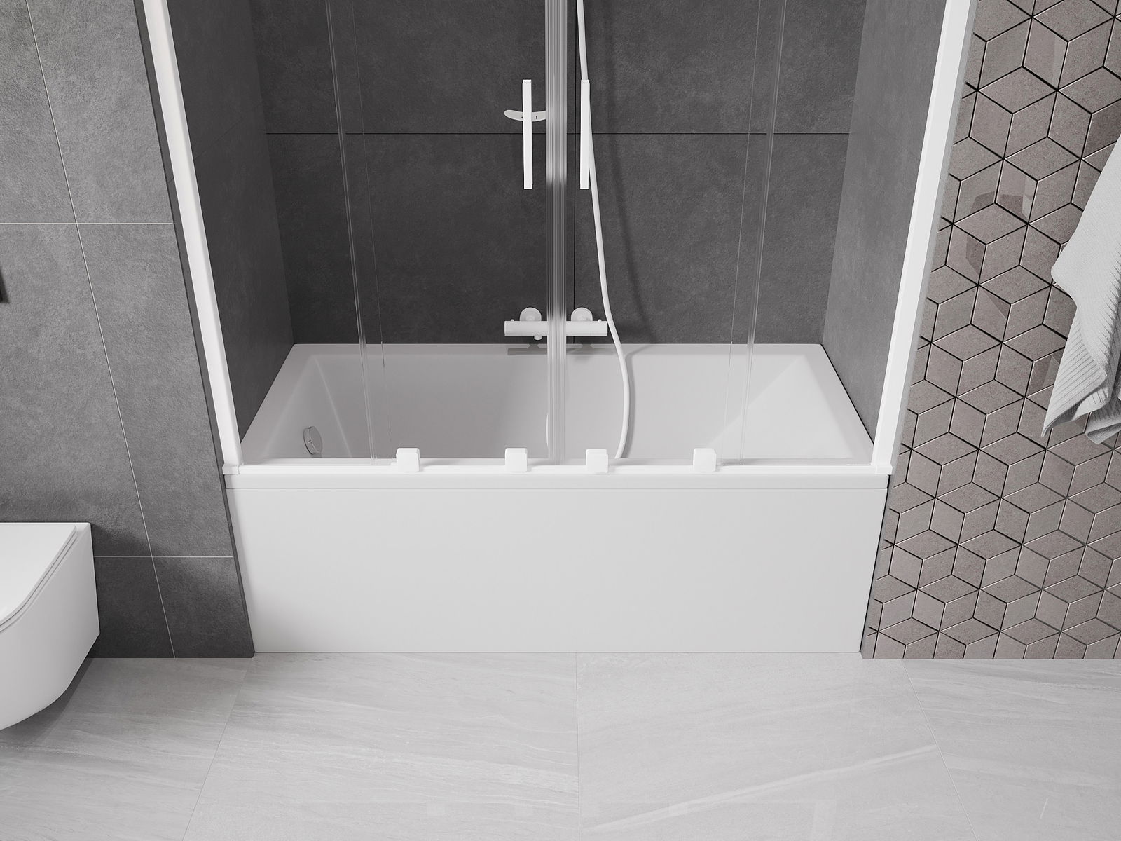 Dzięki zastosowaniu uniwersalnego systemu mocowania, parawan może być zamontowany z prawej lub z lewej strony, zależnie od potrzeb. W ten sposób możesz z łatwością zaprojektować prysznic dopasowany do przestrzeni łazienki.
