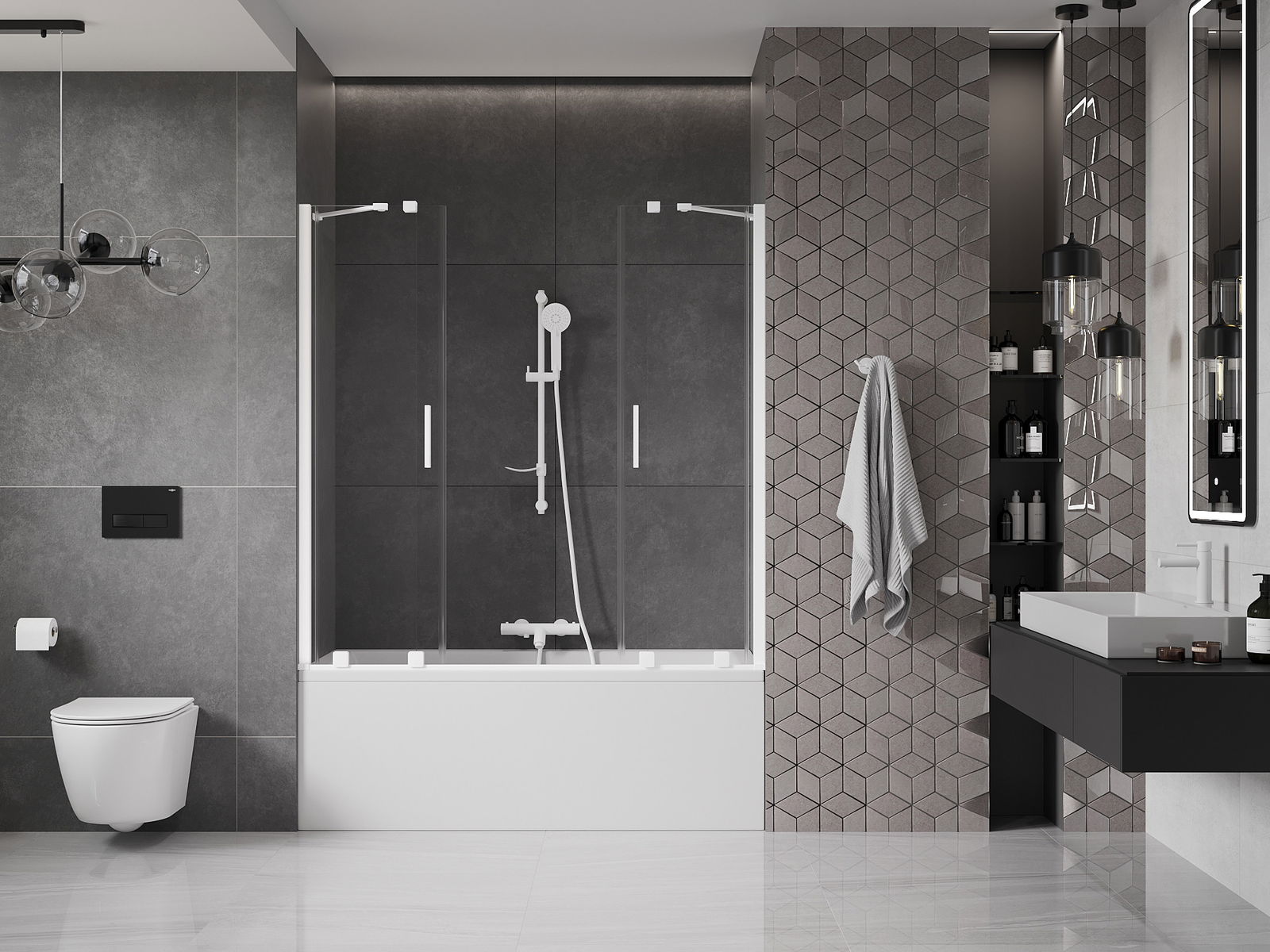 Mexen Velar Duo parawan nawannowy 2-skrzydłowy rozsuwany 160 x 150 cm, transparent, biały - 896-160-000-02-20