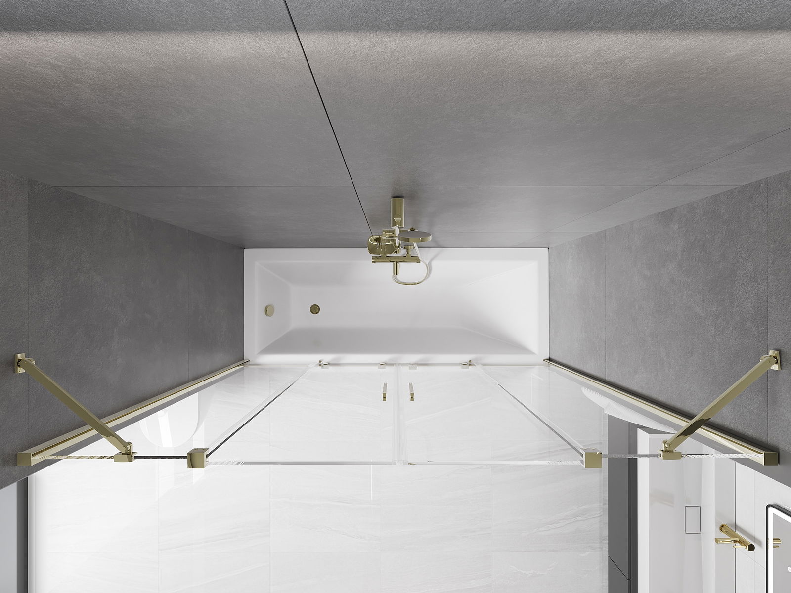Mexen Velar Duo parawan nawannowy 2-skrzydłowy rozsuwany 180 x 150 cm, transparent, złoty - 896-180-000-02-50