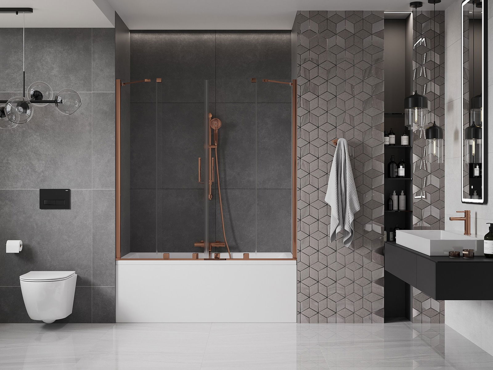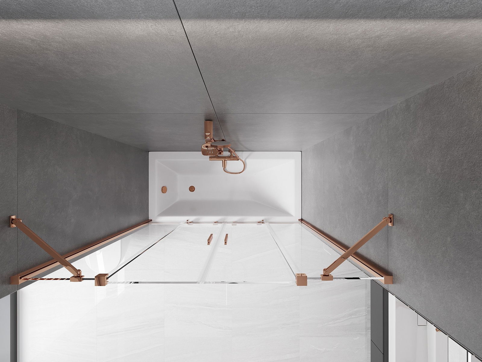 Mexen Velar Duo parawan nawannowy 2-skrzydłowy rozsuwany 140 x 150 cm, transparent, różowe złoto - 896-140-000-02-60