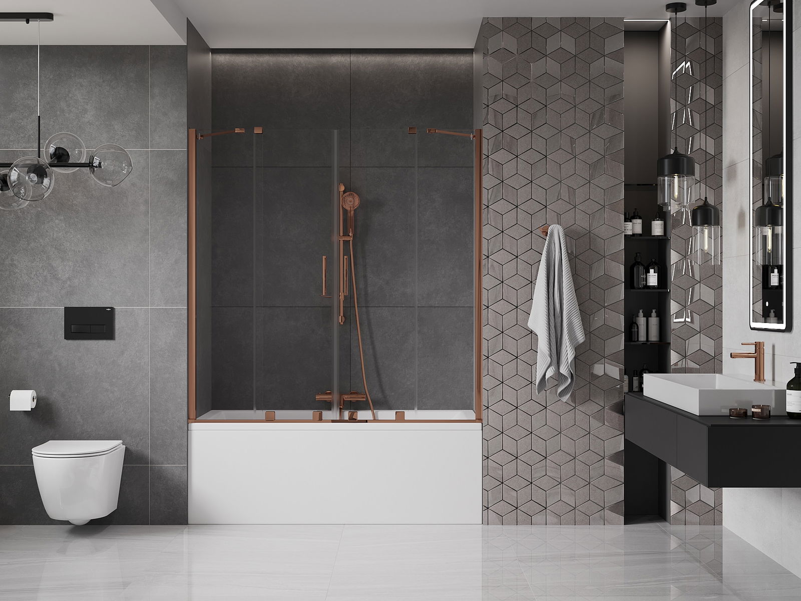Mexen Velar Duo parawan nawannowy 2-skrzydłowy rozsuwany 150 x 150 cm, transparent, różowe złoto - 896-150-000-02-60