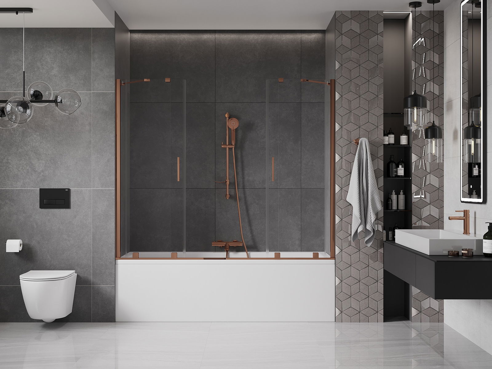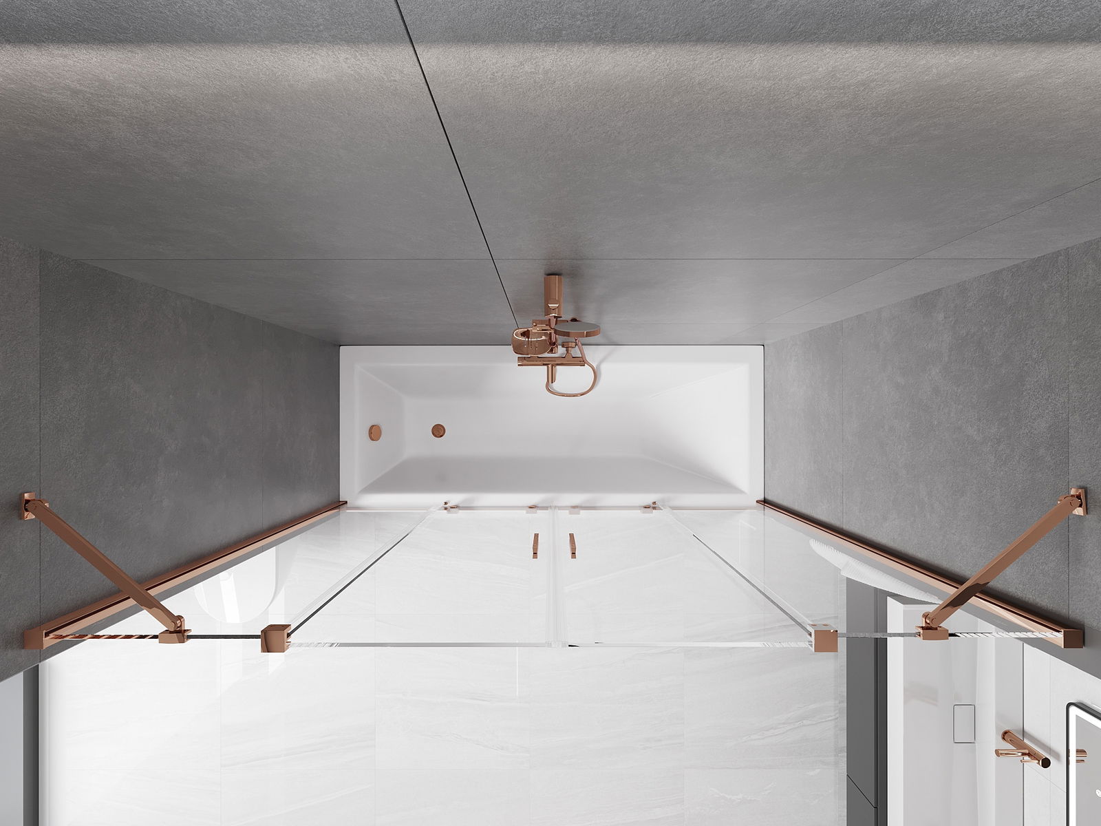 Mexen Velar Duo parawan nawannowy 2-skrzydłowy rozsuwany 180 x 150 cm, transparent, różowe złoto - 896-180-000-02-60