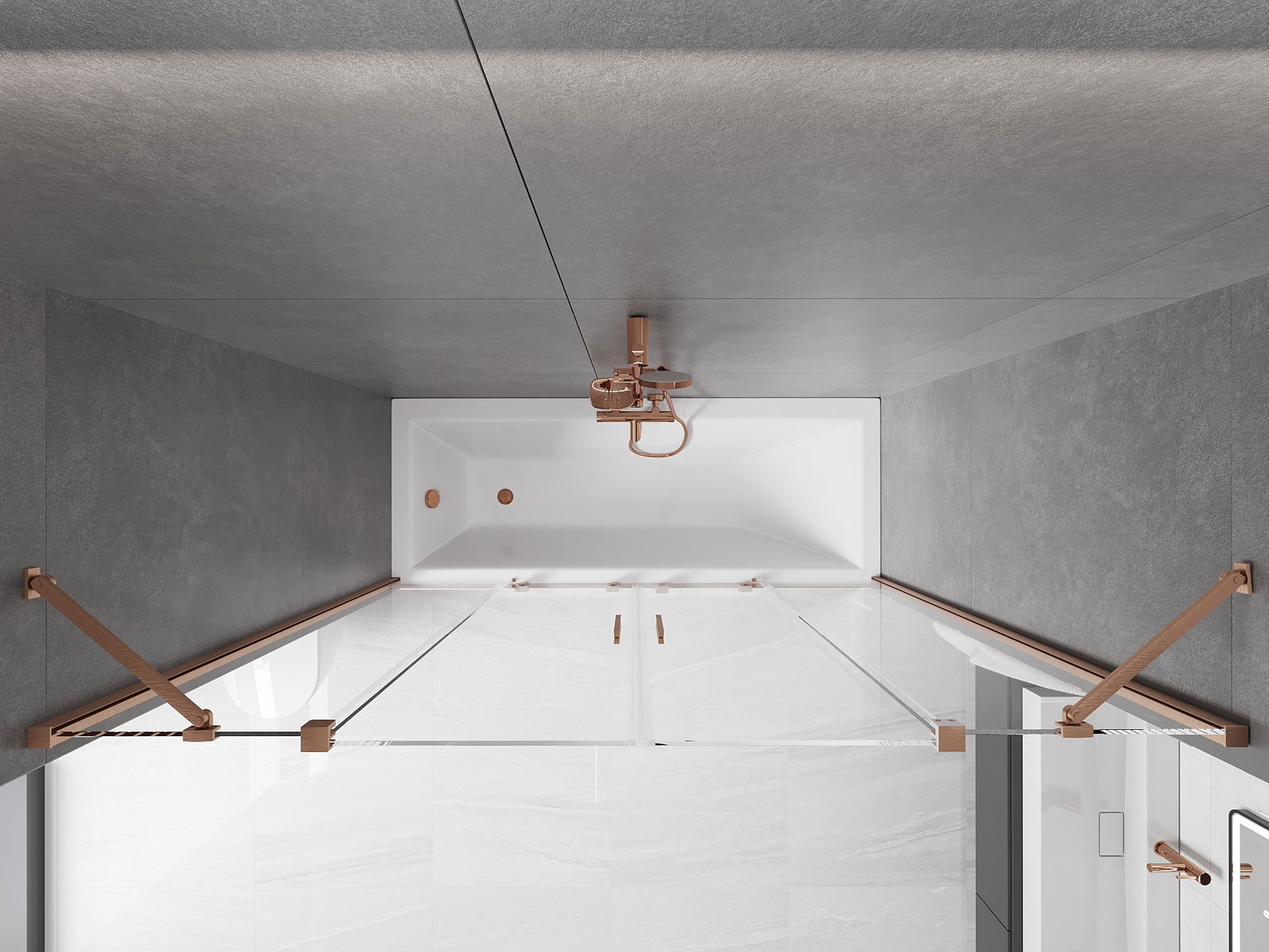 Mexen Velar Duo parawan nawannowy 2-skrzydłowy rozsuwany 200 x 150 cm, transparent, miedź szczotkowana - 896-200-000-02-65