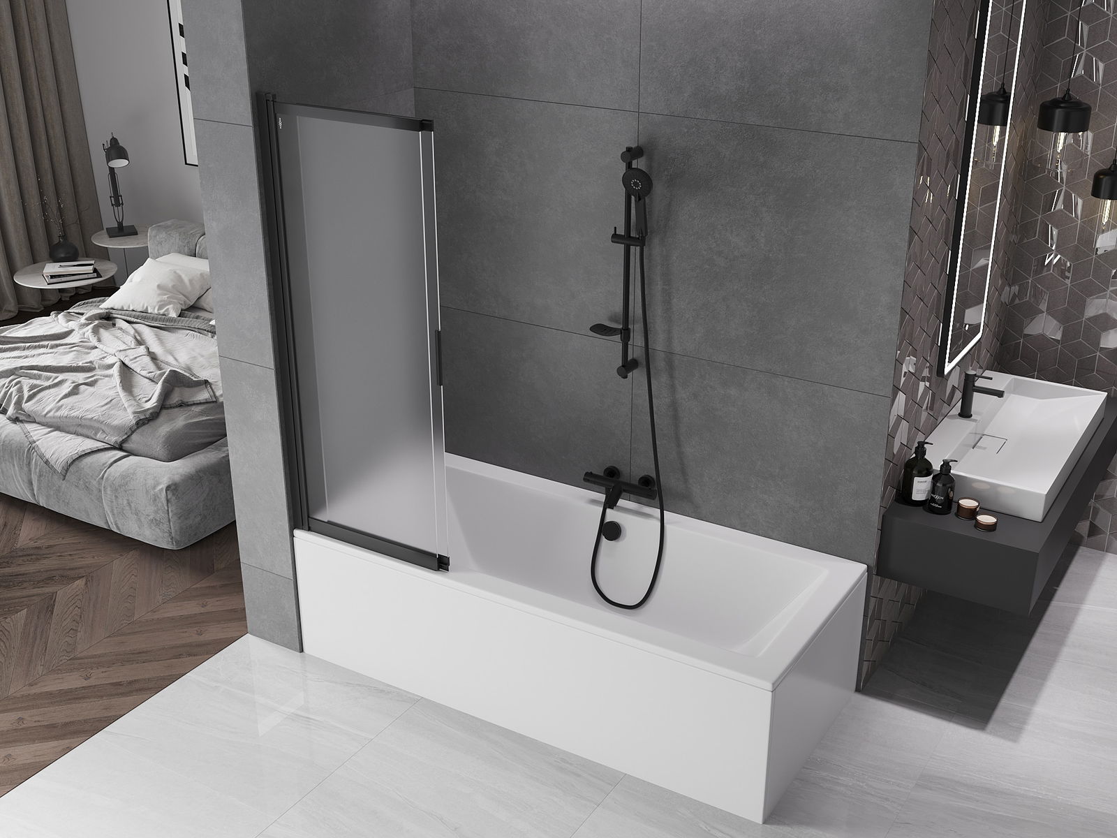 Dzięki zastosowaniu uniwersalnego systemu mocowania, parawan może być zamontowany z prawej lub z lewej strony, zależnie od potrzeb. W ten sposób możesz z łatwością zaprojektować prysznic dopasowany do przestrzeni łazienki.