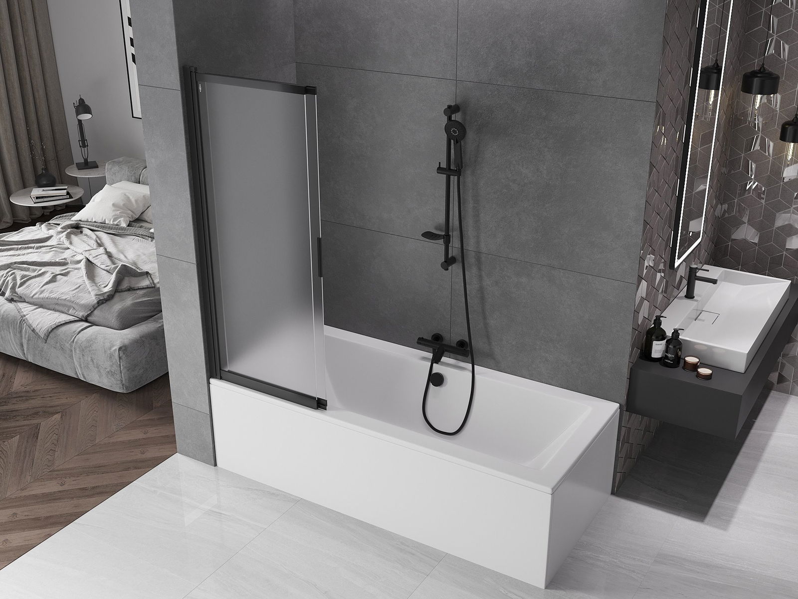Dzięki zastosowaniu uniwersalnego systemu mocowania, parawan może być zamontowany z prawej lub z lewej strony, zależnie od potrzeb. W ten sposób możesz z łatwością zaprojektować prysznic dopasowany do przestrzeni łazienki.