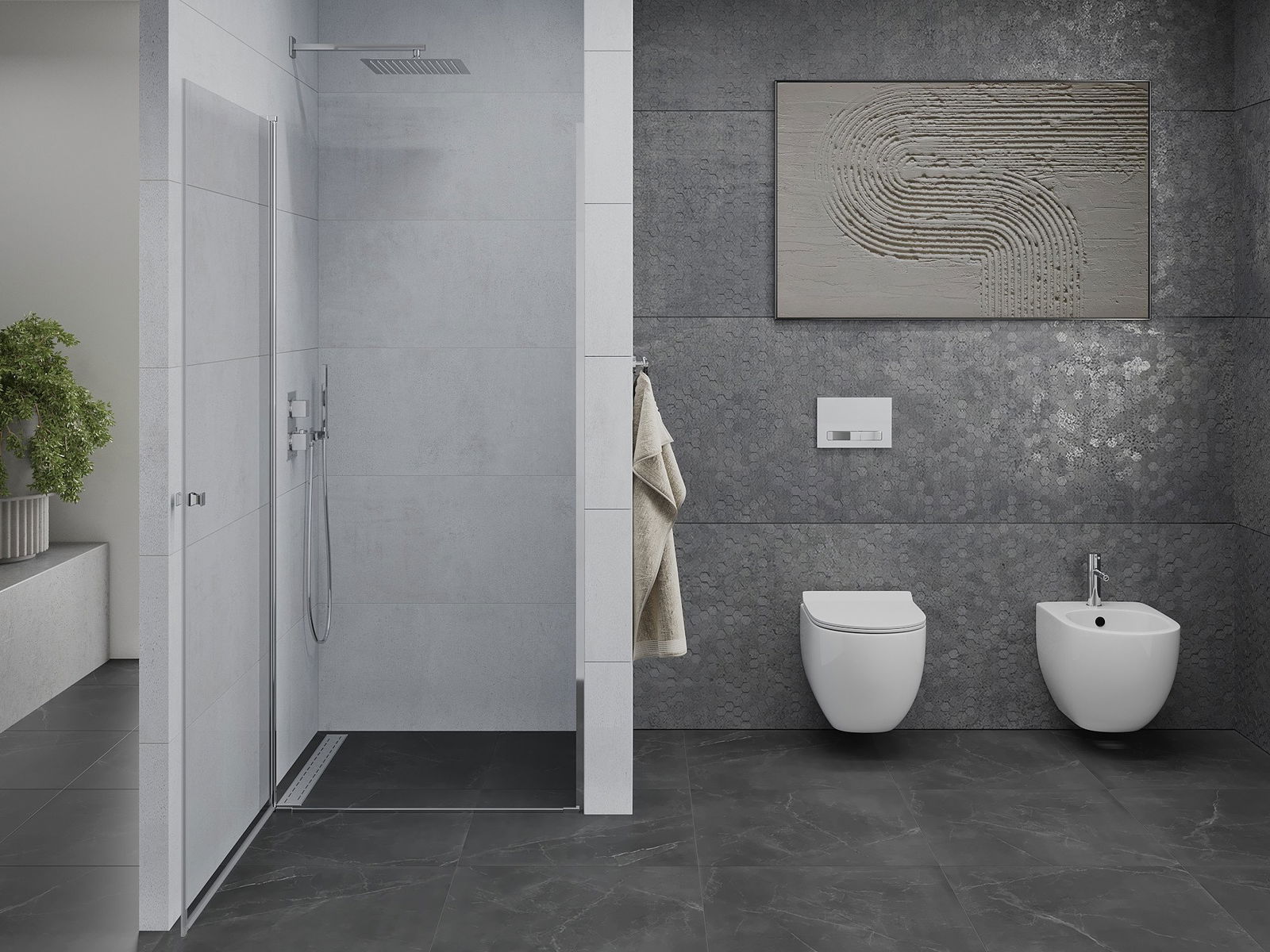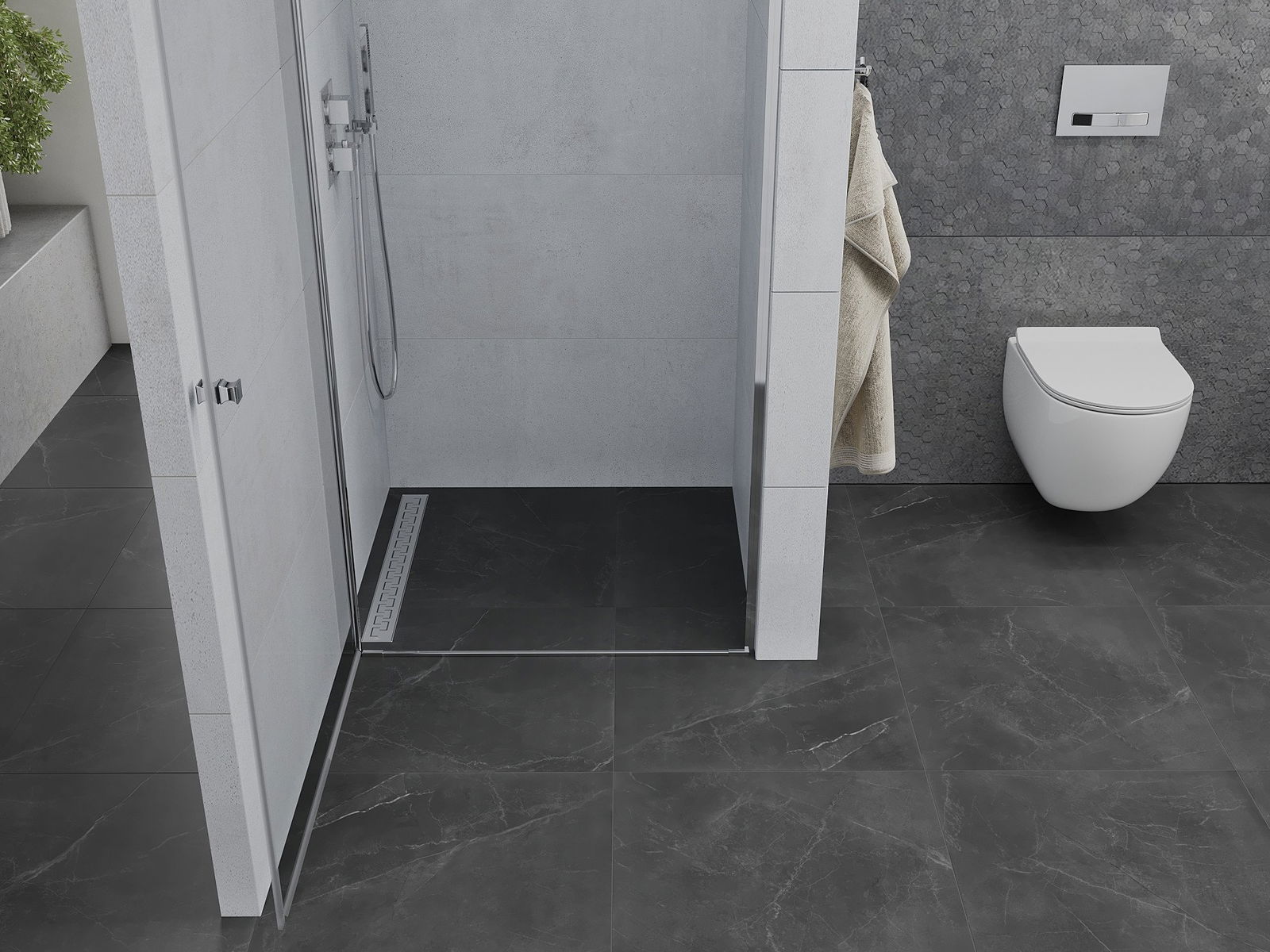Dzięki zastosowaniu uniwersalnego systemu mocowania, drzwi prysznicowe mogą zostać zamontowane z prawej lub z lewej strony, zależnie od potrzeb. Dzięki temu możesz z łatwością zaprojektować prysznic dopasowany do przestrzeni łazienki.