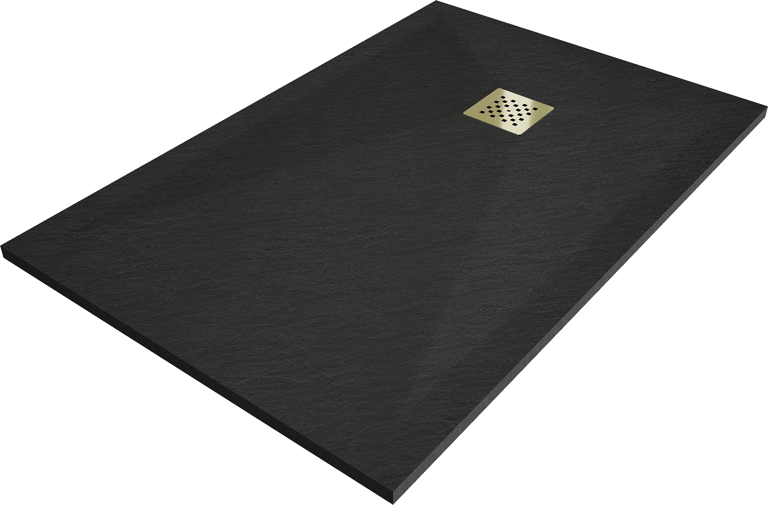 Mexen Stone+ brodzik kompozytowy prostokątny 80 x 70 cm, czarny, maskownica złota - 44707080-G