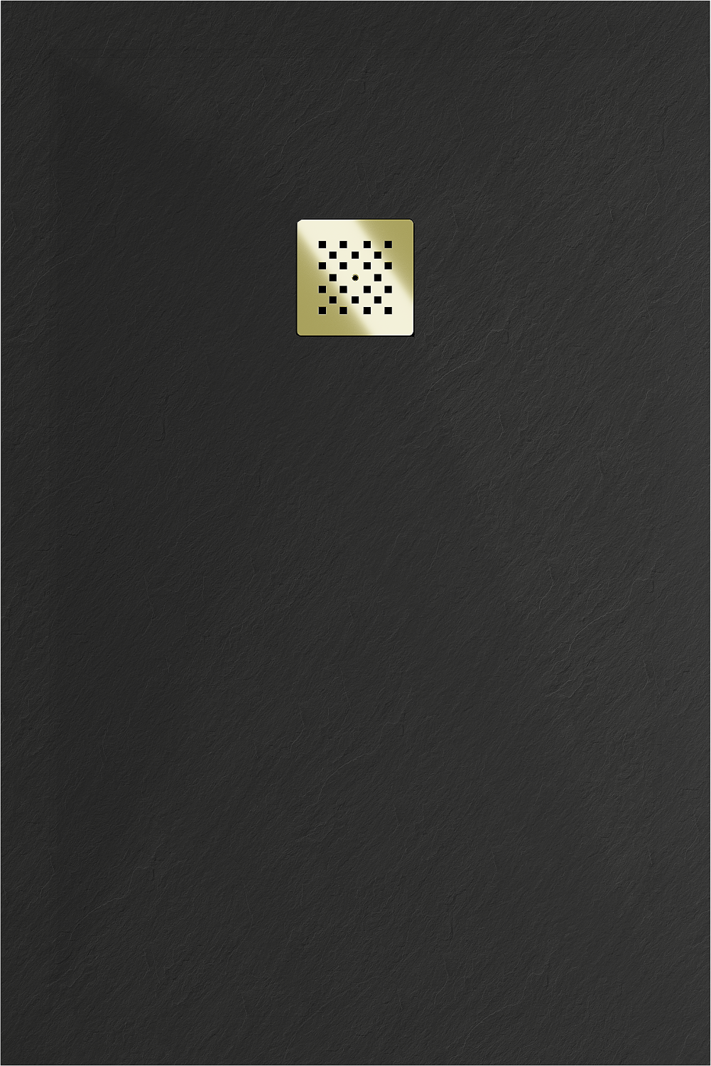 Mexen Stone+ brodzik kompozytowy prostokątny 100 x 70 cm, czarny, maskownica złota - 44707010-G