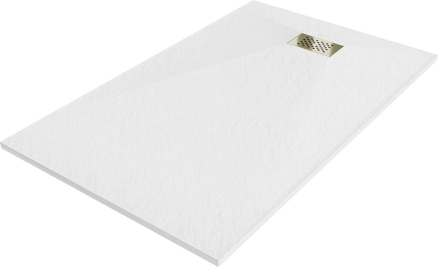 Mexen Hugo brodzik prostokątny SMC 140 x 70 cm, biały, maskownica złota - 42107014-G