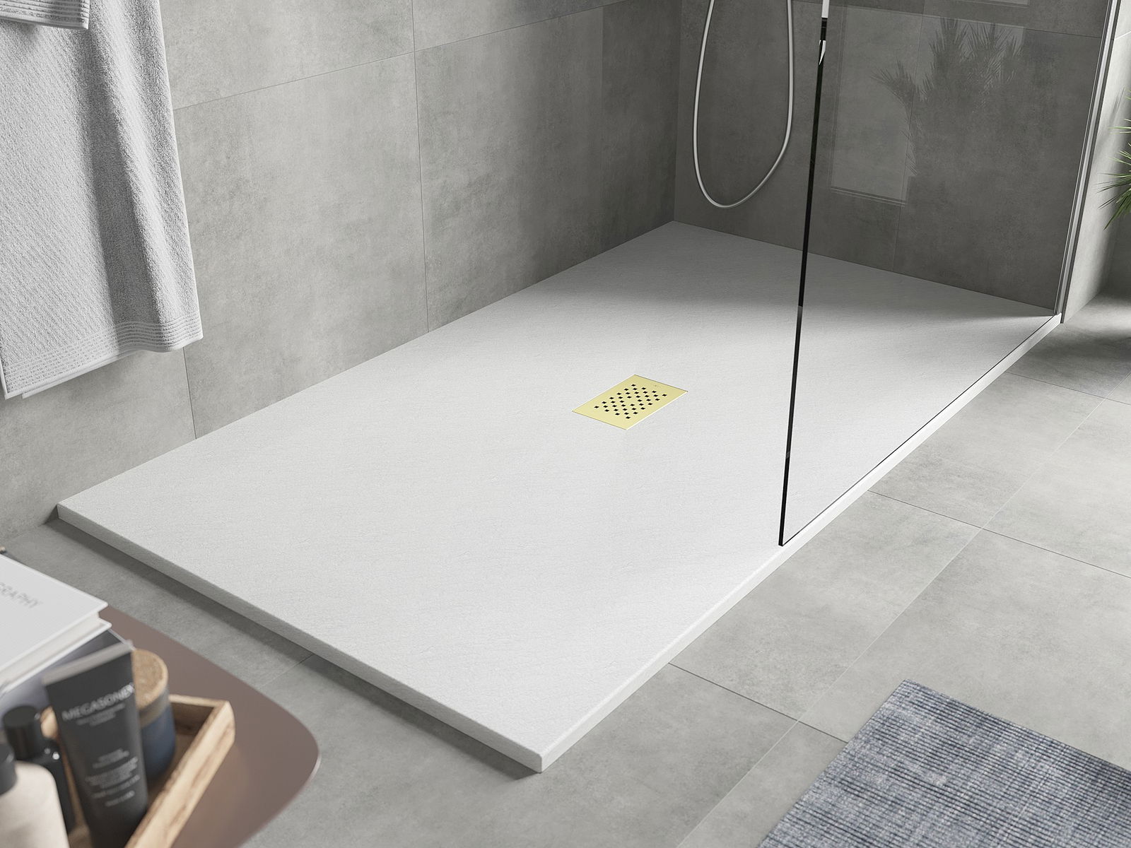 Mexen Hugo brodzik prostokątny SMC 200 x 100 cm, biały, maskownica złota - 42101020-G