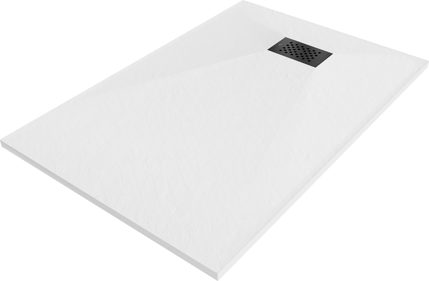 Mexen Hugo brodzik prostokątny SMC 130 x 70 cm, biały, maskownica czarna - 42107013-B