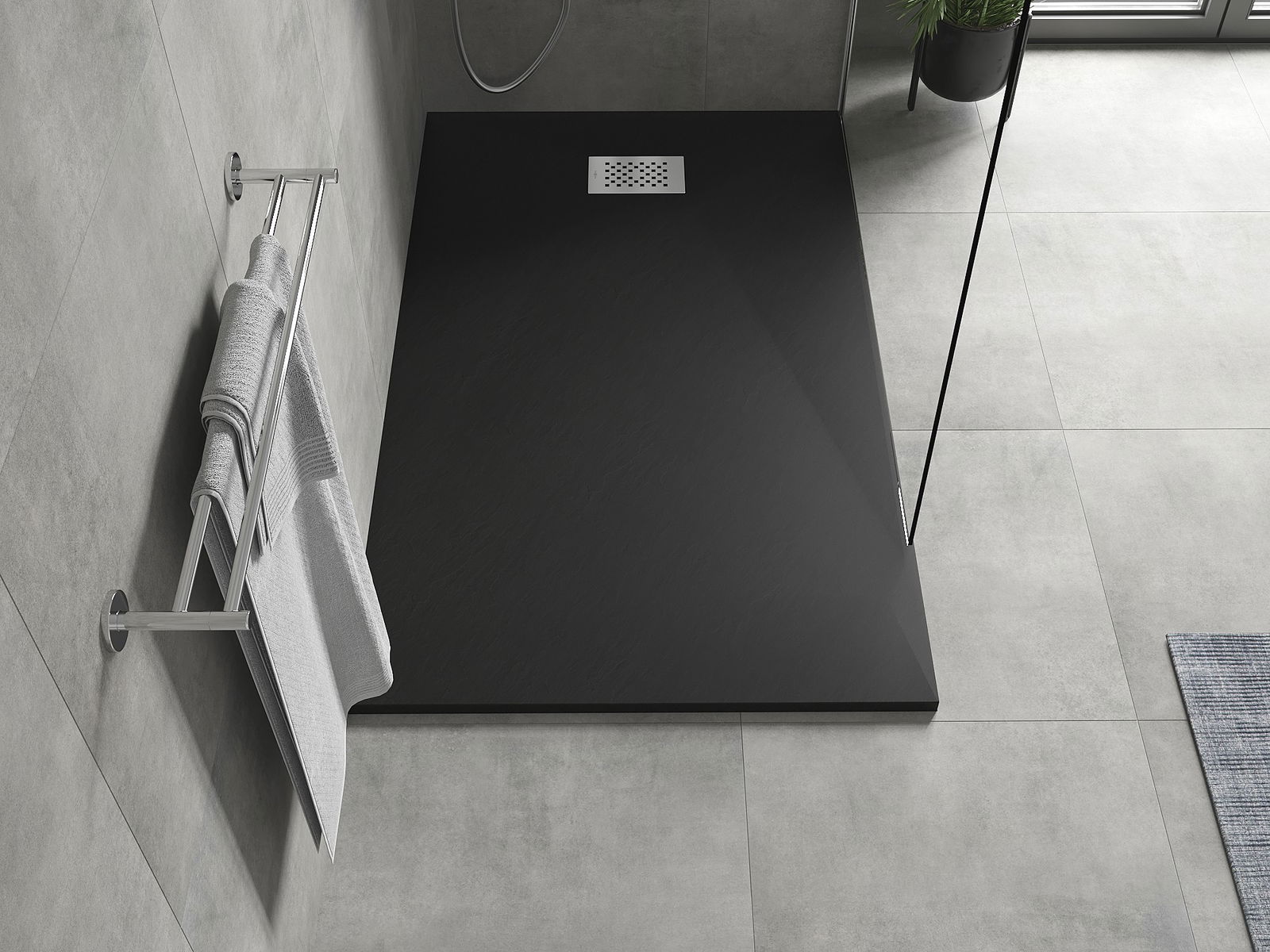 Mexen Hugo brodzik prostokątny SMC 160 x 80 cm, czarny, maskownica inox - 42708016-X