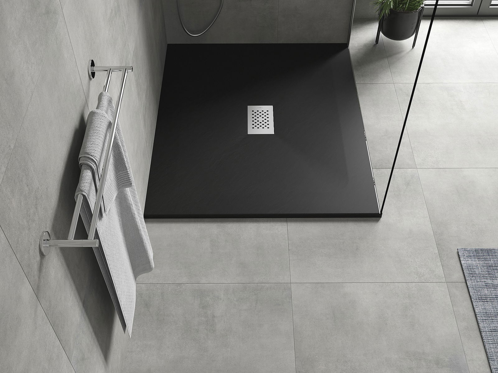 Mexen Hugo brodzik prostokątny SMC 110 x 100 cm, czarny, maskownica inox - 42701011-X