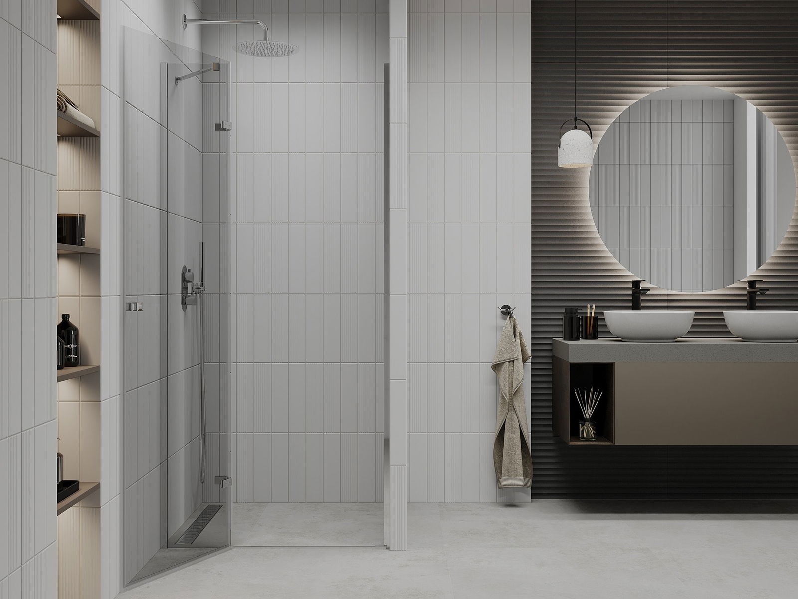 Poręczny i wygodny uchwyt został wykonany z trwałego i odpornego metalu. Modny kształt w połączeniu z wykończeniem dopasowanym do koloru profili nadaje całości nowoczesnego i stylowego wyglądu, podkreślając estetykę każdej łazienki.