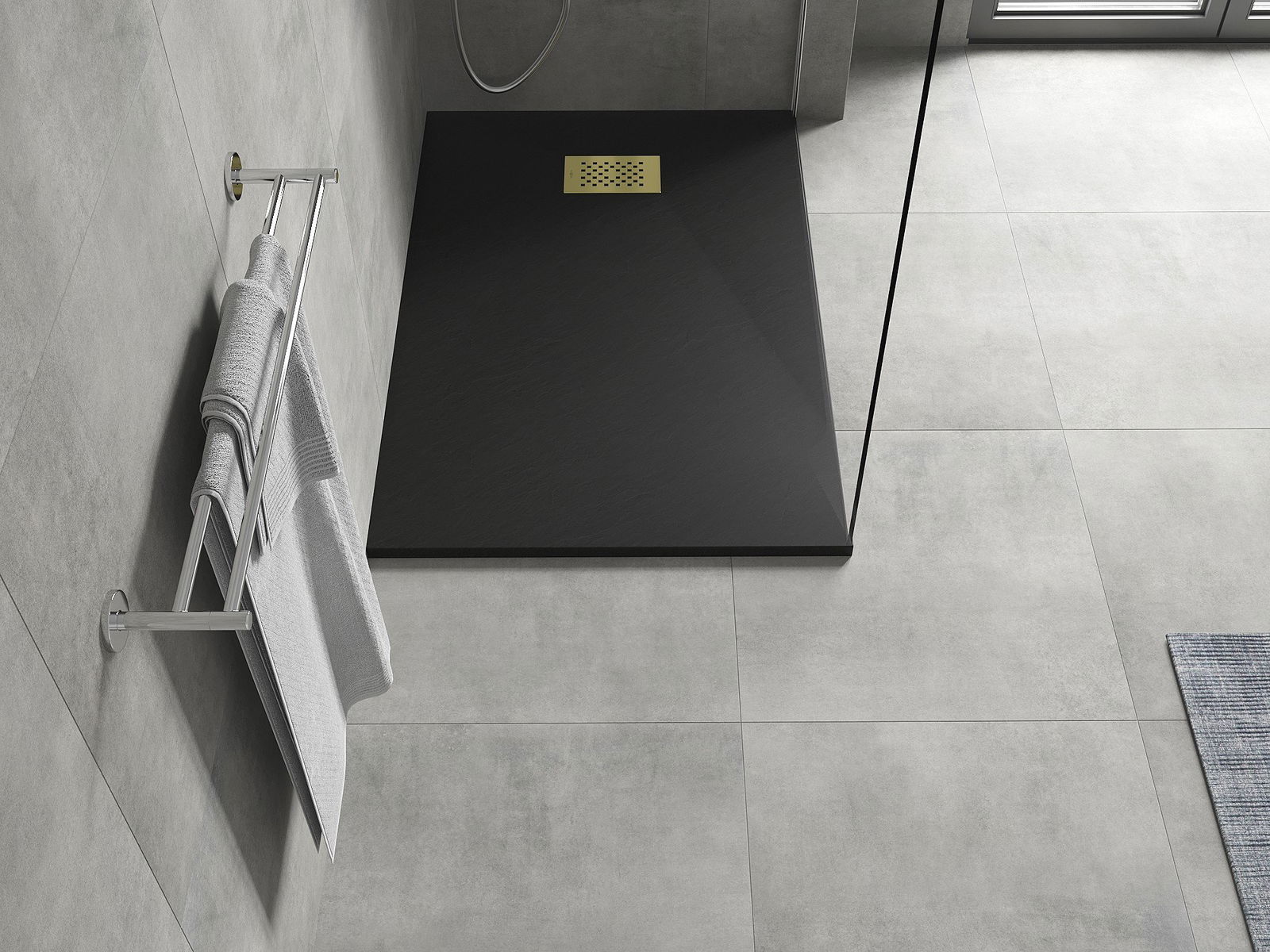 Mexen Hugo brodzik prostokątny SMC 130 x 70 cm, czarny, maskownica złota - 42707013-G