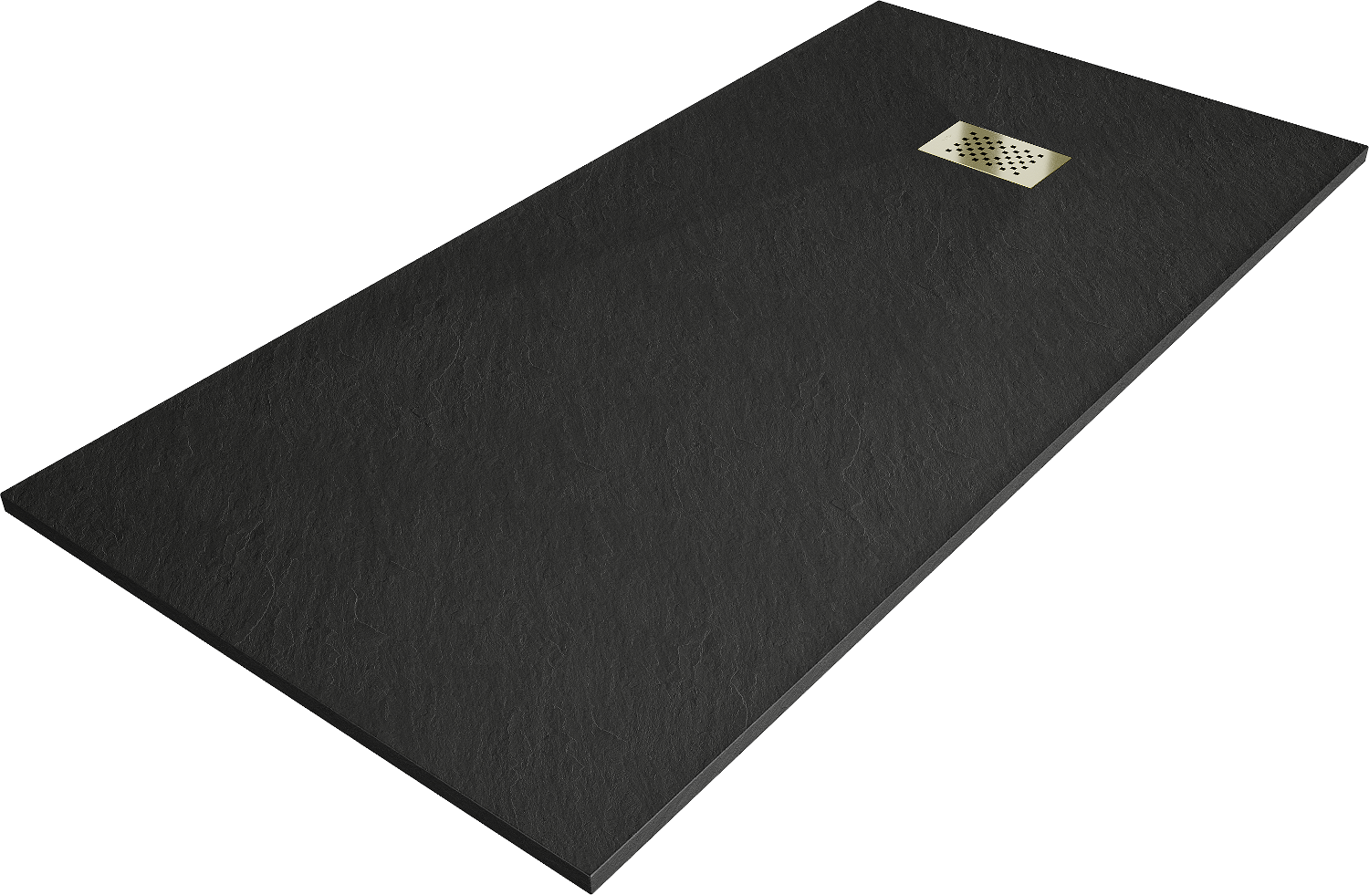 Mexen Hugo brodzik prostokątny SMC 180 x 80 cm, czarny, maskownica złota - 42708018-G