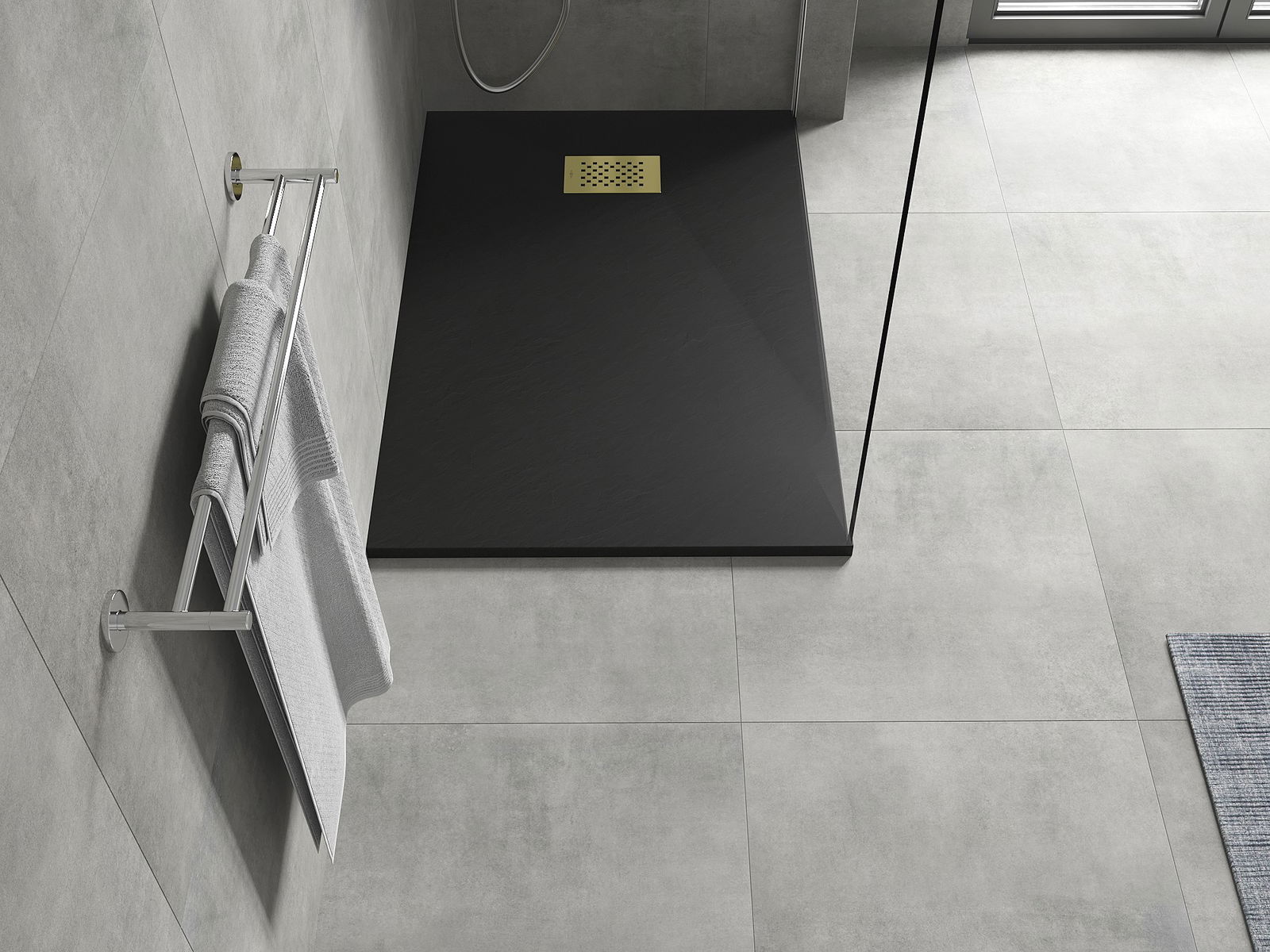 Mexen Hugo brodzik prostokątny SMC 100 x 90 cm, czarny, maskownica złota - 42709010-G