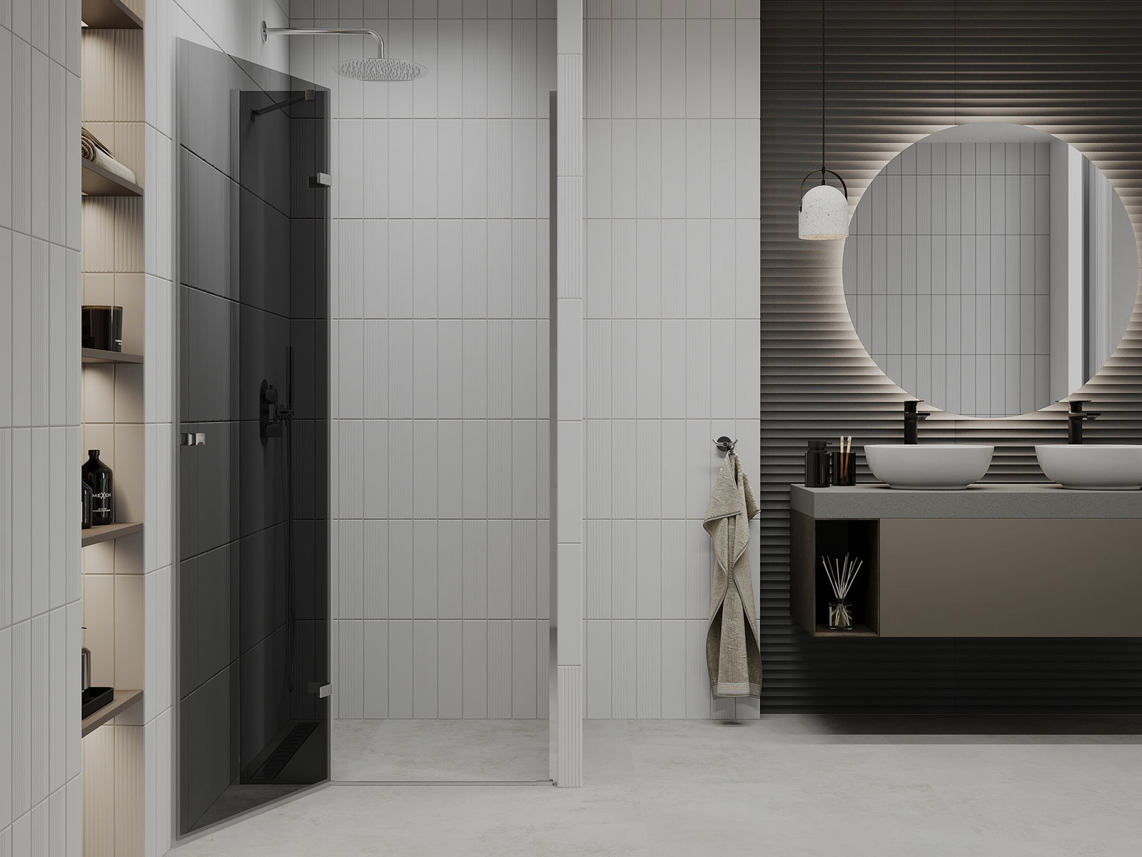 Poręczny i wygodny uchwyt został wykonany z trwałego i odpornego metalu. Modny kształt w połączeniu z wykończeniem dopasowanym do koloru profili nadaje całości nowoczesnego i stylowego wyglądu, podkreślając estetykę każdej łazienki.