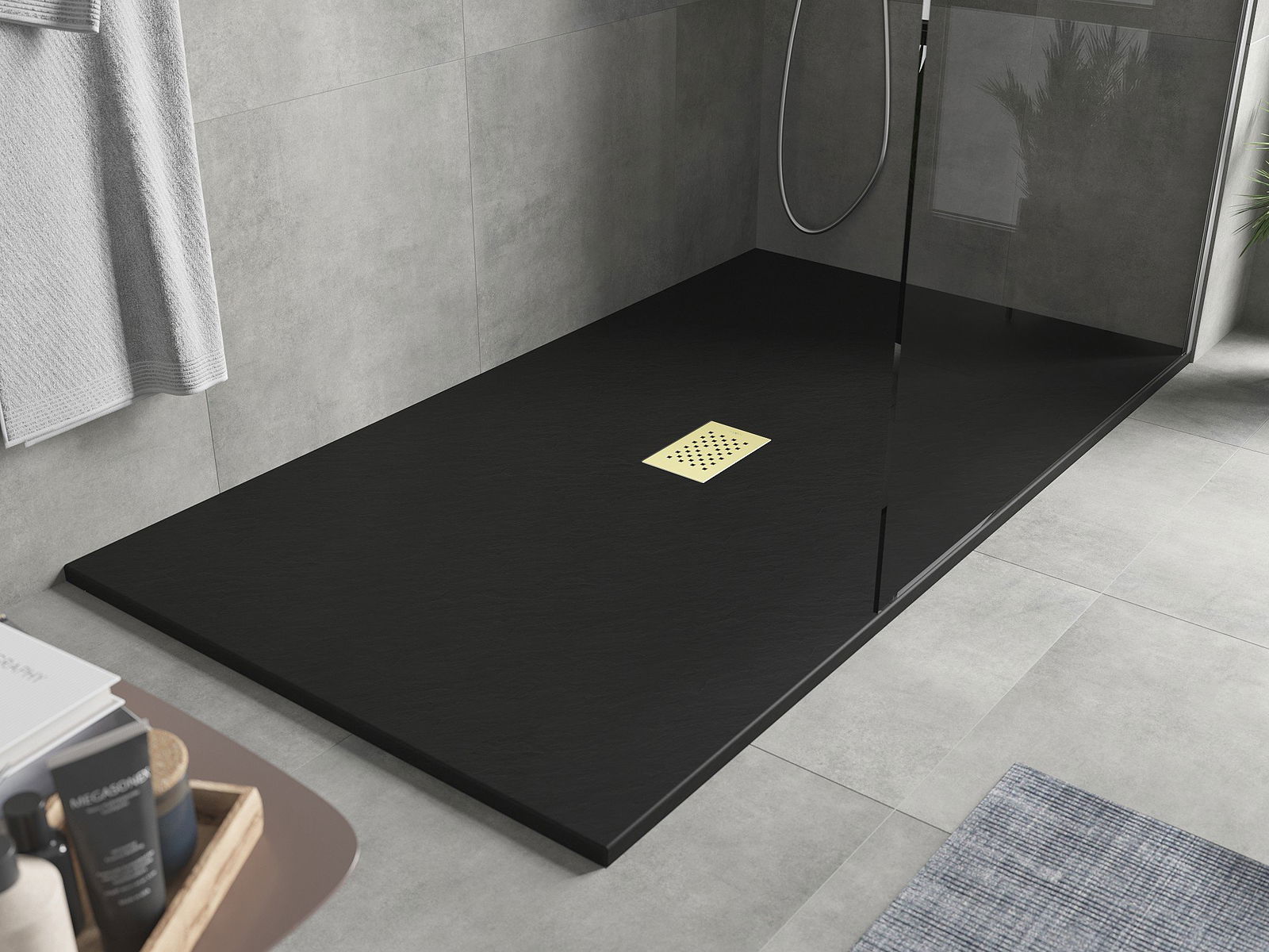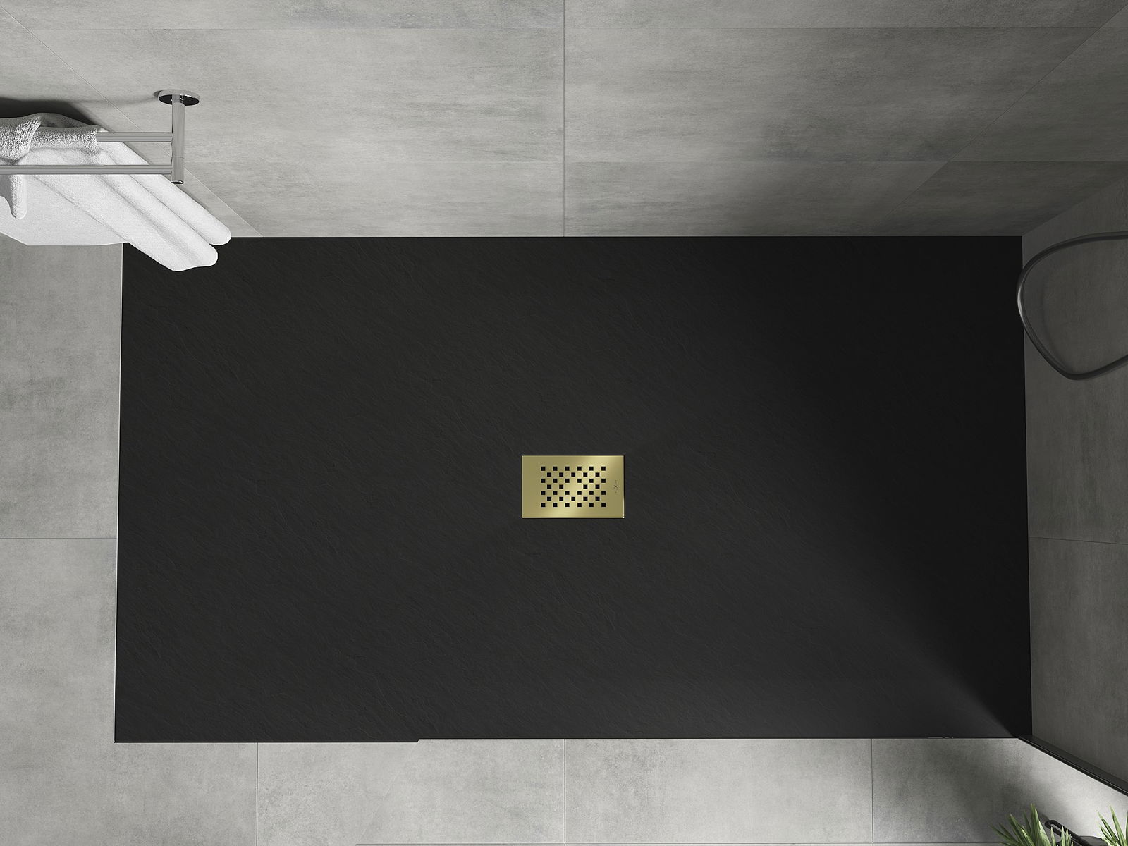 Mexen Hugo brodzik prostokątny SMC 200 x 100 cm, czarny, maskownica złota - 42701020-G