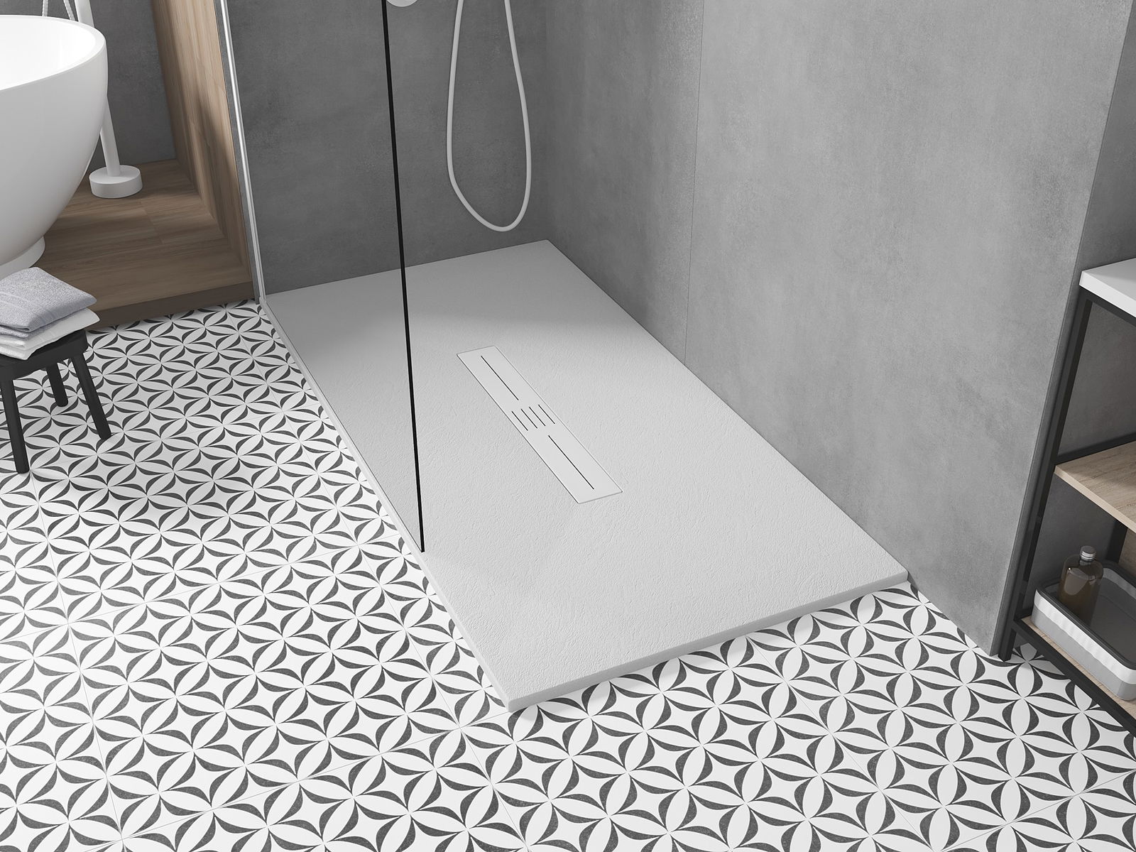 Powierzchnia brodzika swoją strukturą przypomina kamień. Stanowi wyjątkowe połączenie naturalnego wyglądu z nowoczesną aranżacją wnętrza. Dodaje charakteru, podkreśla estetykę i elegancję wystroju łazienki oraz zachwyca swoją formą.