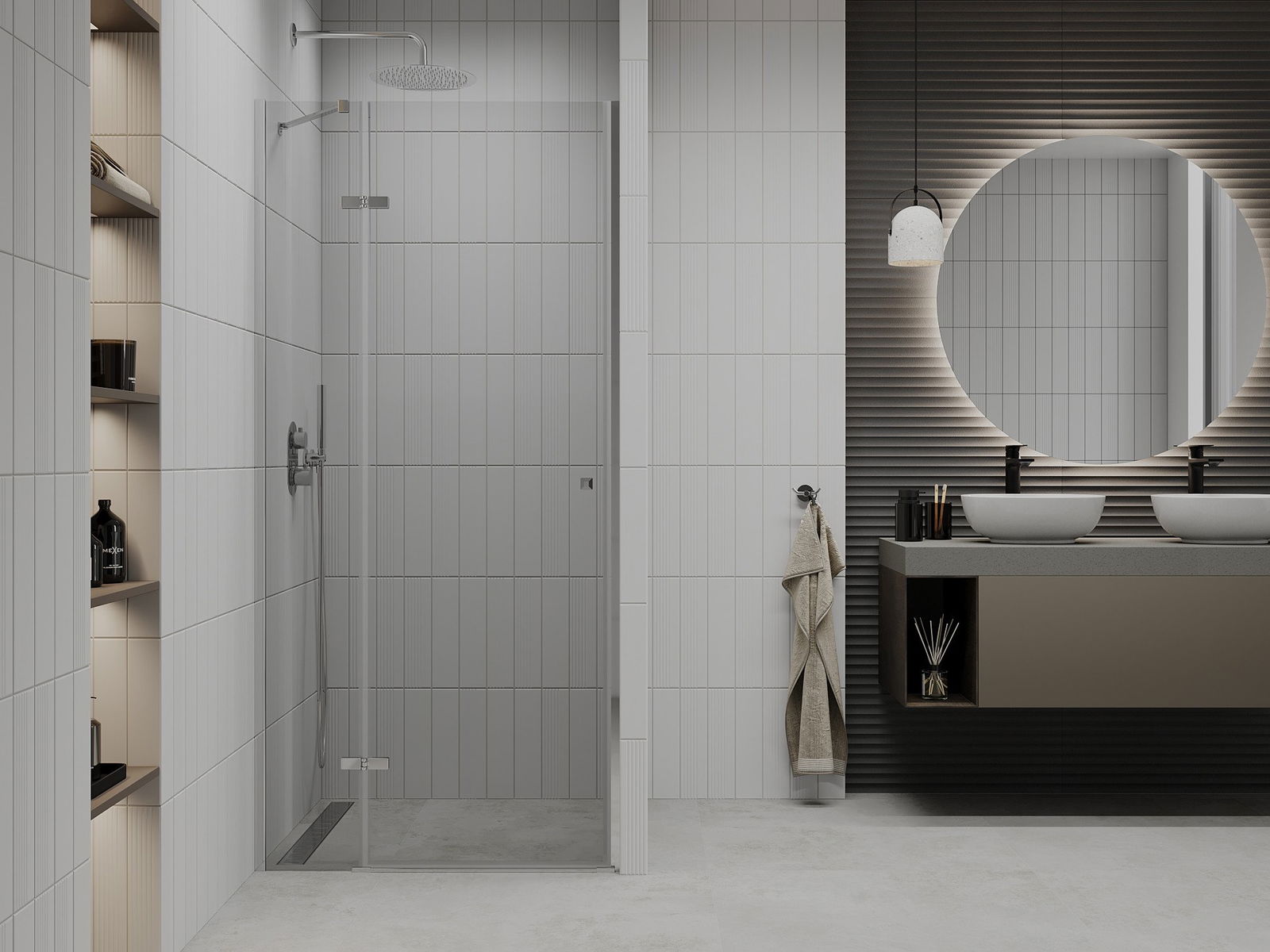 Poręczny i wygodny uchwyt został wykonany z trwałego i odpornego metalu. Modny kształt w połączeniu z wykończeniem dopasowanym do koloru profili nadaje całości nowoczesnego i stylowego wyglądu, podkreślając estetykę każdej łazienki.