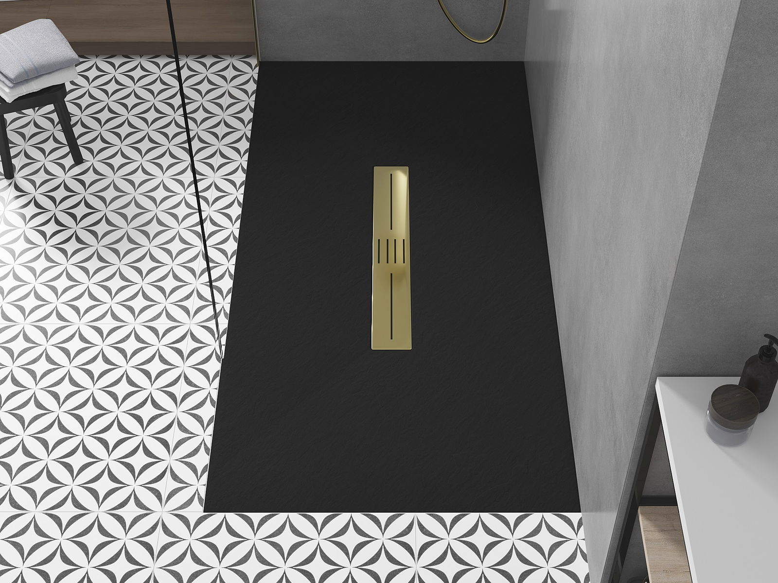 Mexen Toro brodzik prostokątny SMC 160 x 80 cm, czarny, maskownica złota - 43708016-G