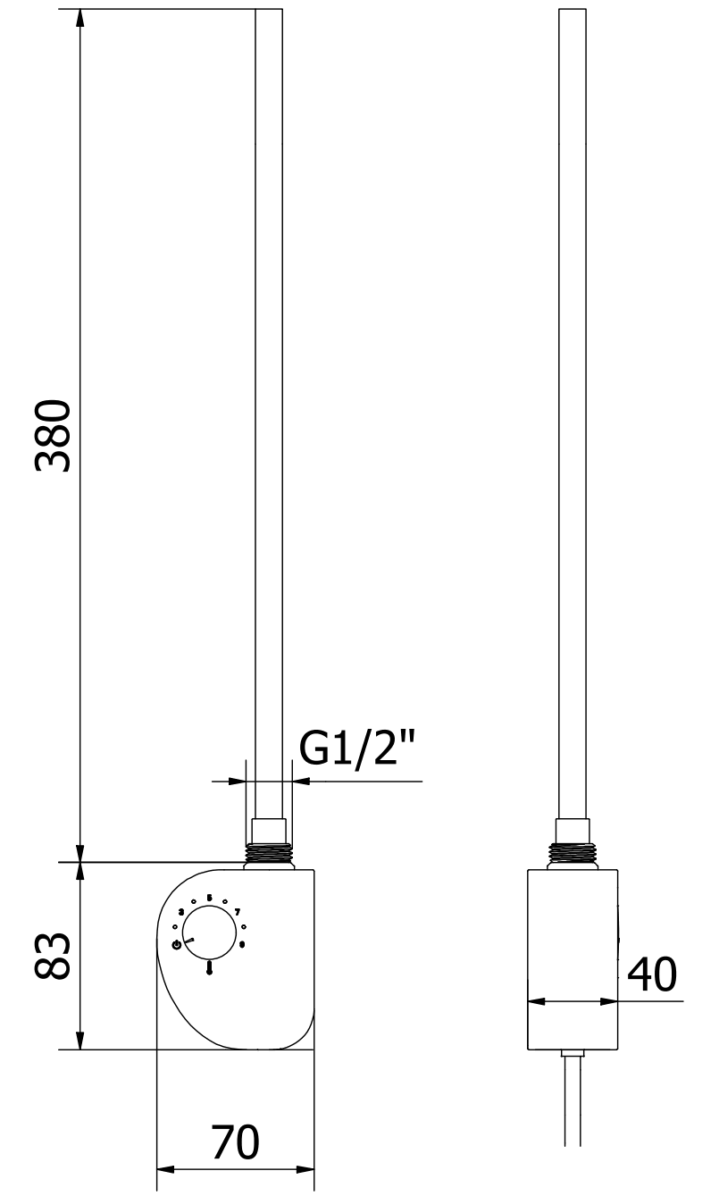 Długość elementu grzejnego: 380 mm