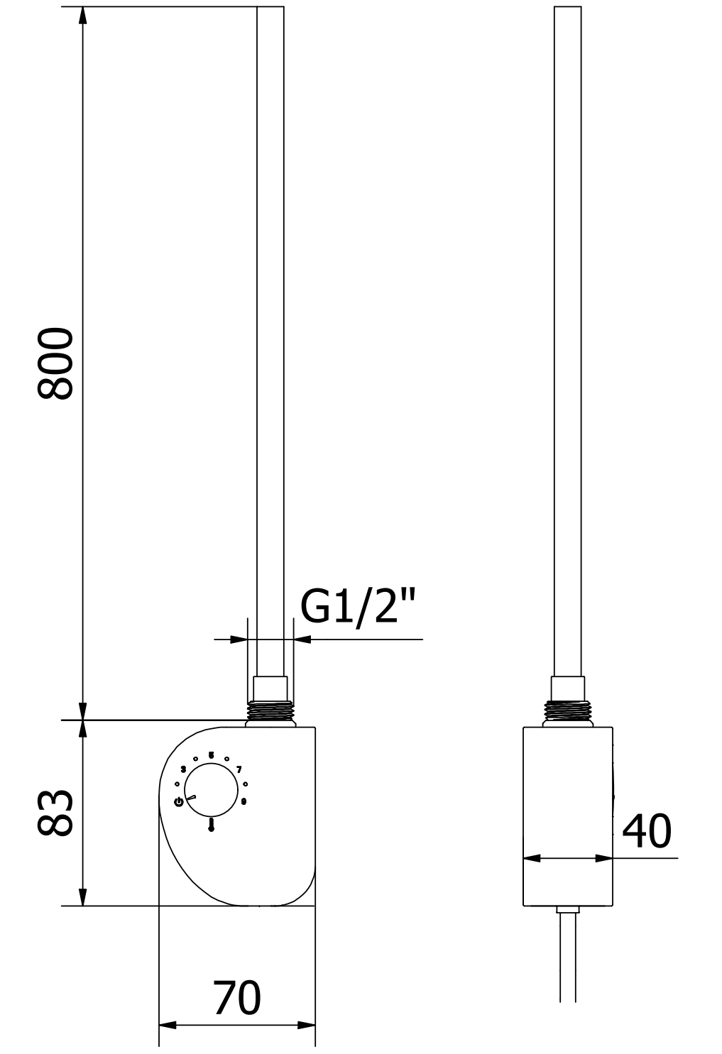 Długość elementu grzejnego: 800 mm