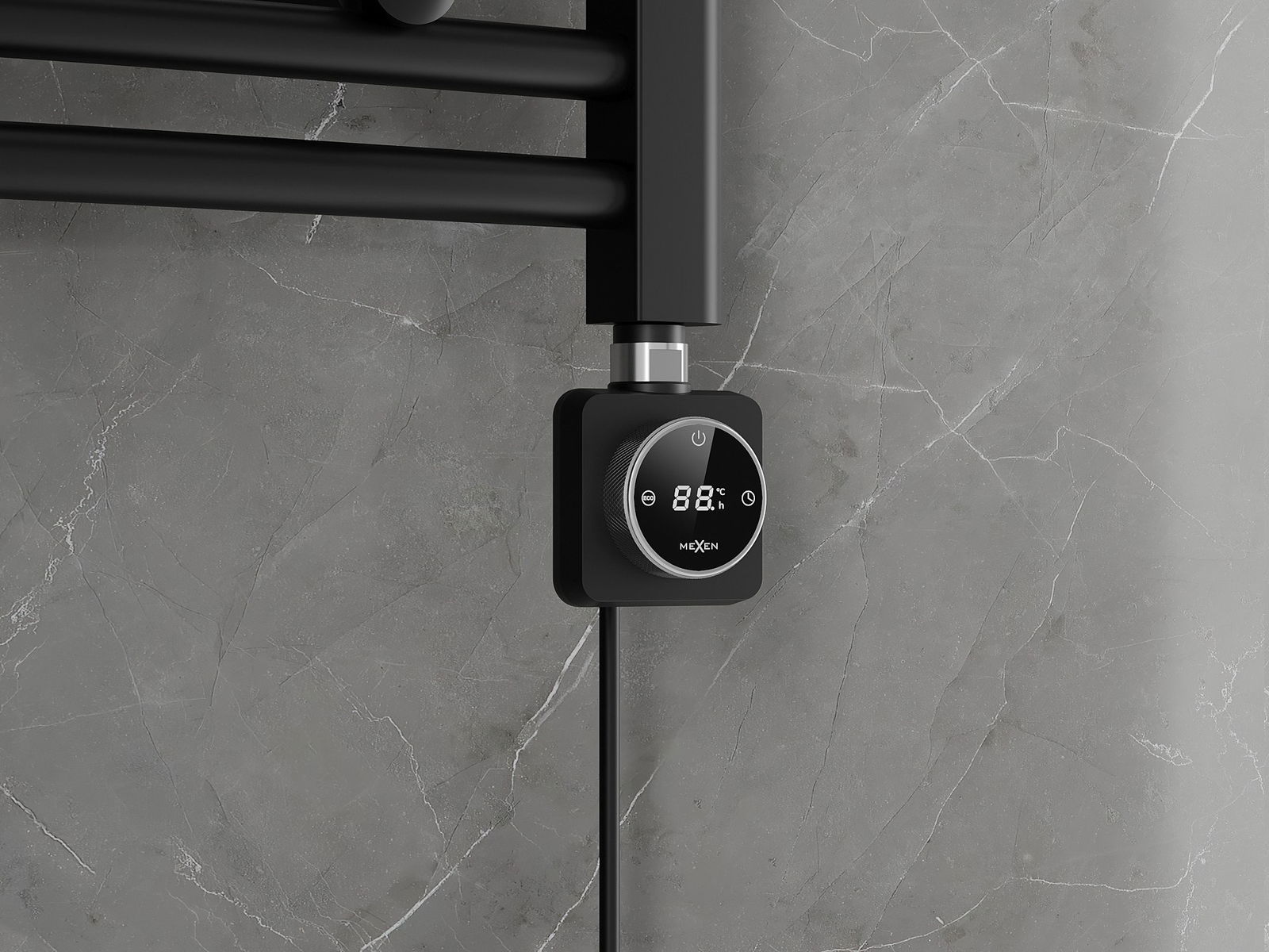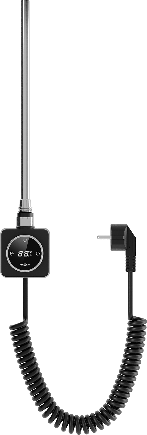 Mexen FA-FD14 to nowoczesna grzałka elektryczna o mocy 400 W, dostępna w eleganckim czarnym kolorze. Długość całkowita wynosi 479 mm, a długość elementu grzejnego 390 mm. Urządzenie pracuje na napięciu 230V/50 Hz i posiada przewód przyłączeniowy o długości 1,5 m. Gwint grzałki to G 1/2", a stopień ochrony IP44 zapewnia bezpieczeństwo użytkowania. Wyświetlacz LED wskazuje tryb pracy, a grzałka oferuje funkcje takie jak ustawienie precyzyjnej temperatury, opcję suszenia i tryb oszczędzania energii.